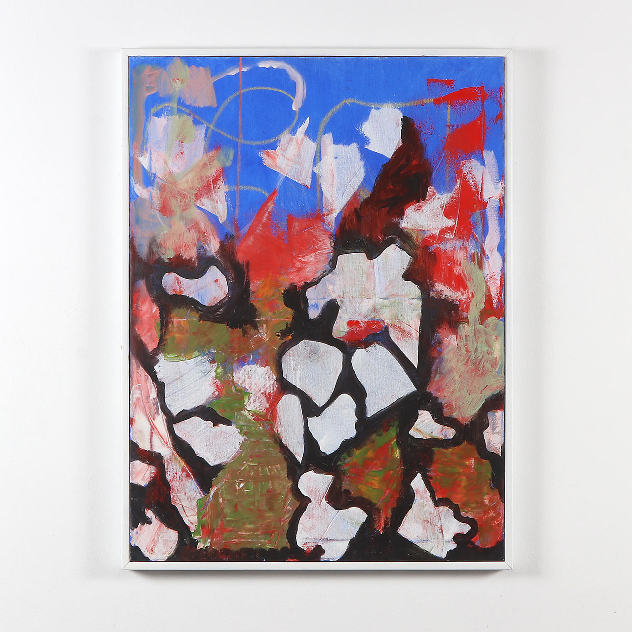 Oljemålning på duk. Abstrakt komposition. Signerad a tergo.