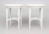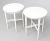 Vitmålade, rund skiva på underrede med kopplade ben. Diameter 53, höjd 67 cm.