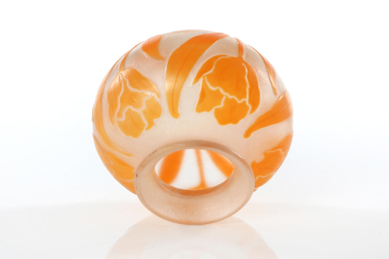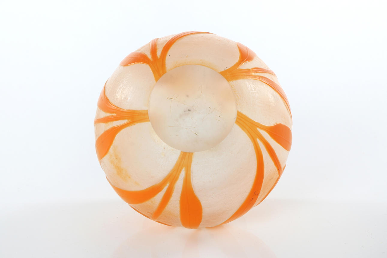 Konstglas i överfångsteknik. Jugend, tidigt 1900-tal. Signerad Kosta KL 110.