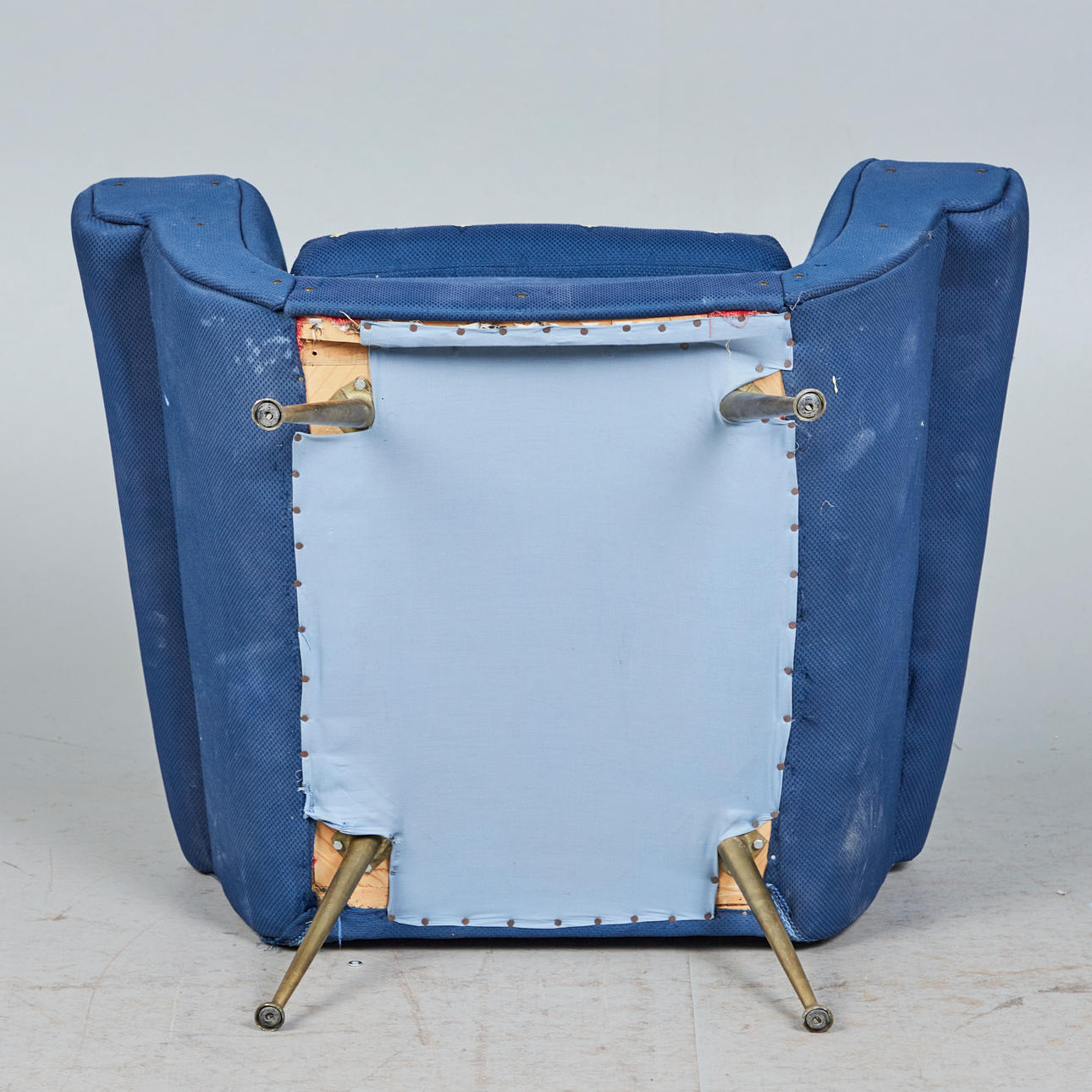 3133720. Fåtölj/fåtölj, tyg, mässing, Italien.