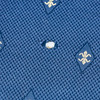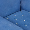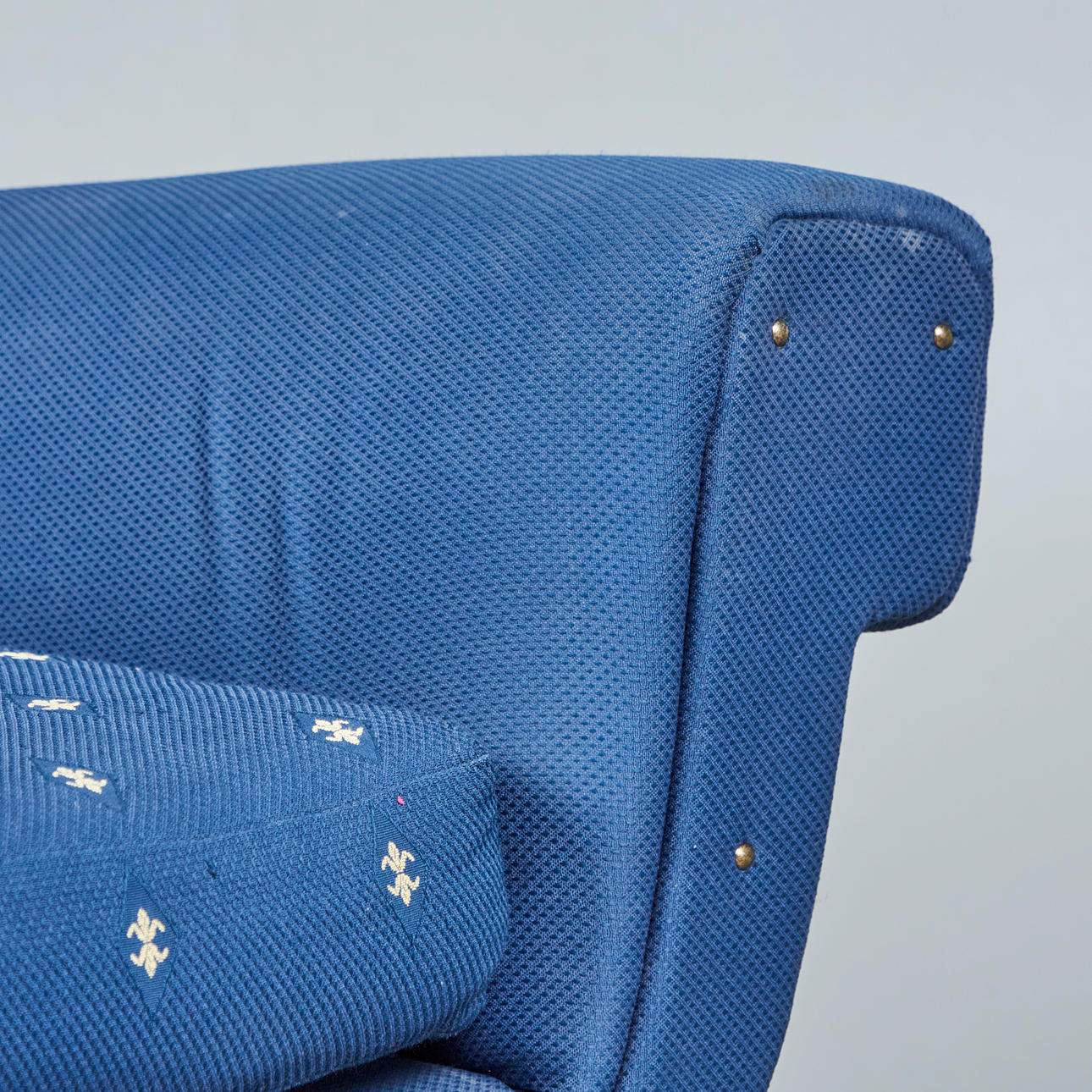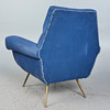 Fåtölj/fåtölj, tyg, mässing, Italien. Klädd konstruktion med armstöd och avtagbar sittklädsel, täckt med ett blått tyg med blommig dekoration, mässingsfötter, H.87cm, sitshöjd: 47cm, W.87cm, D.65cm.