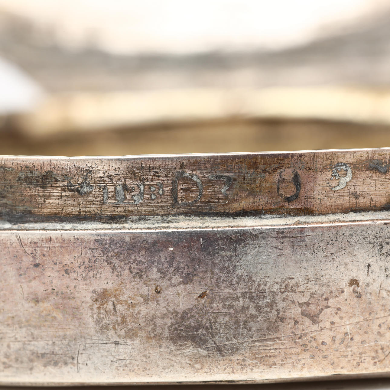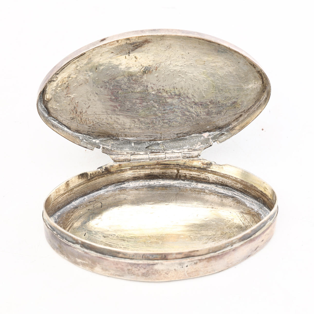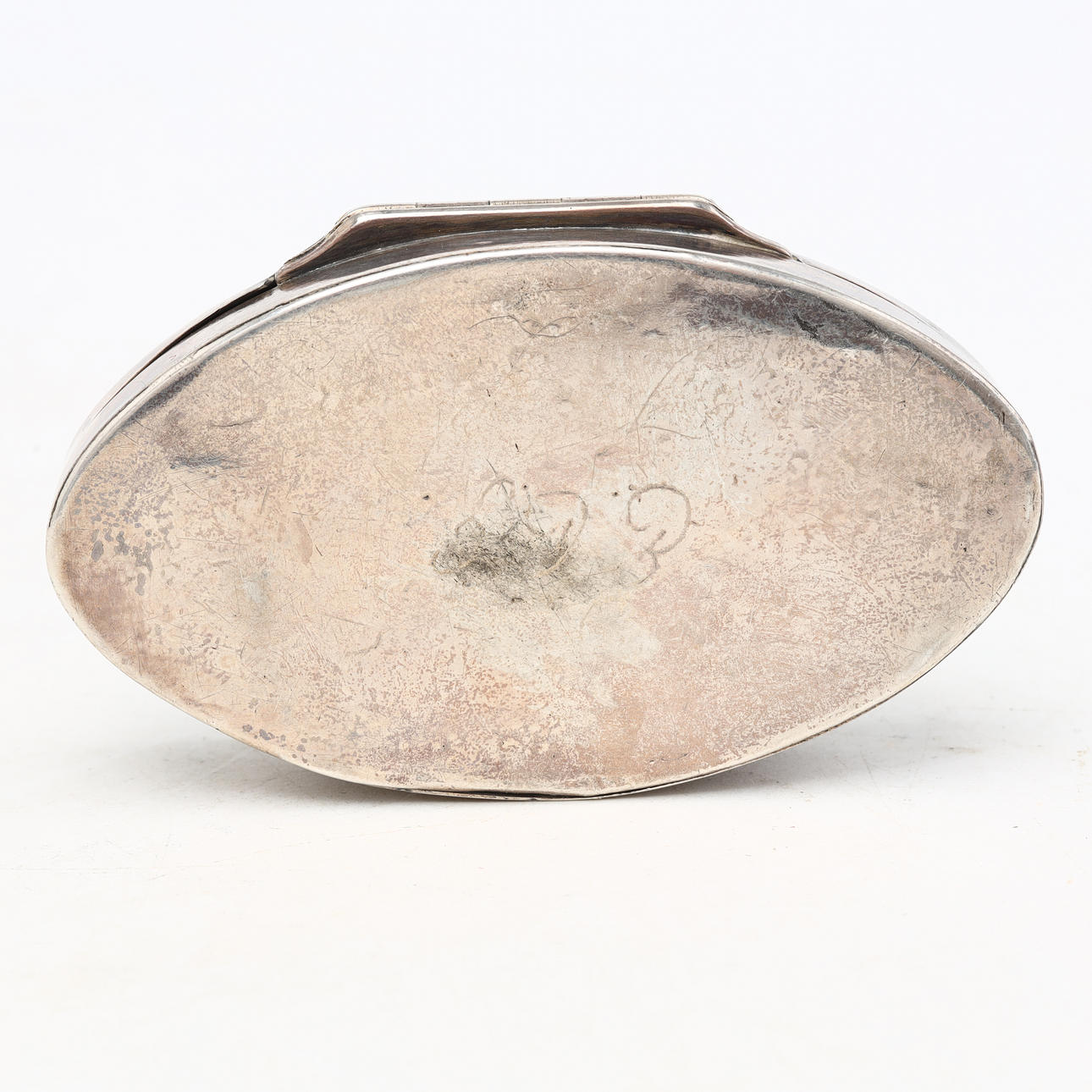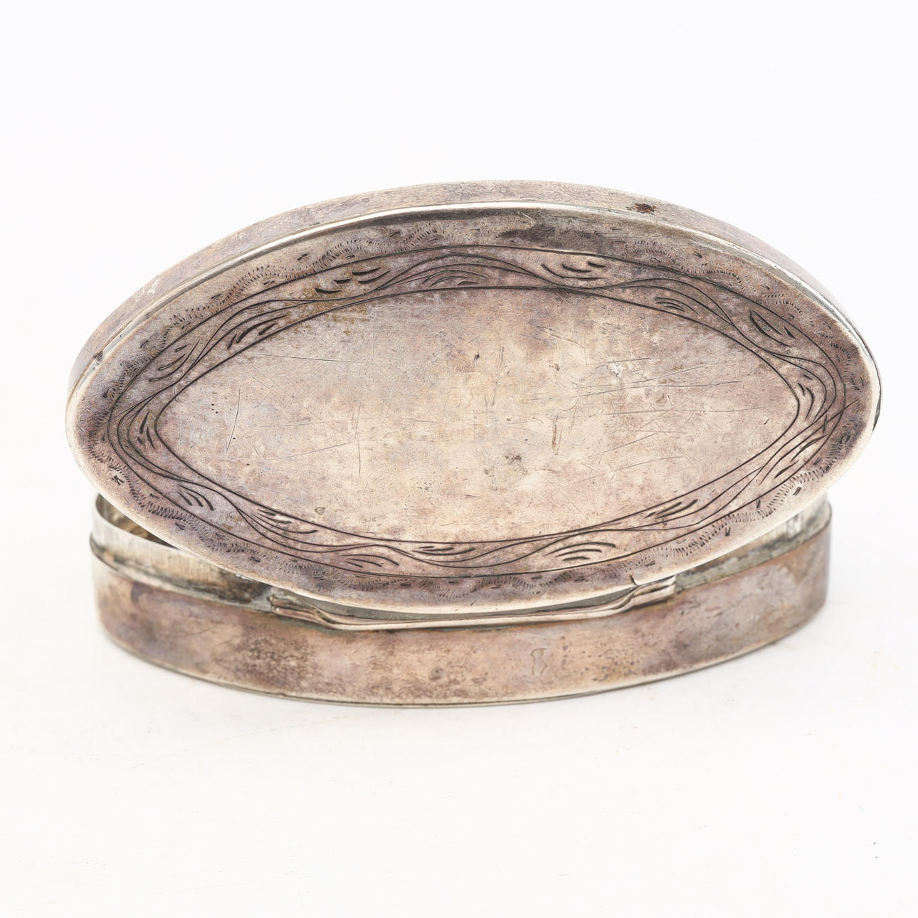 Graverad dekor på lock. Längd ca 8,5 cm Vikt ca 60 gram.