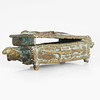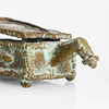 Skulpturer, skrin mm, 4 st, väst-Afrika samt tjur efter antiken. Skrinets längd 18cm.