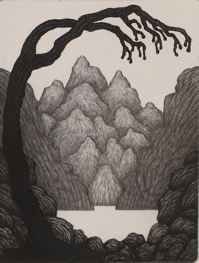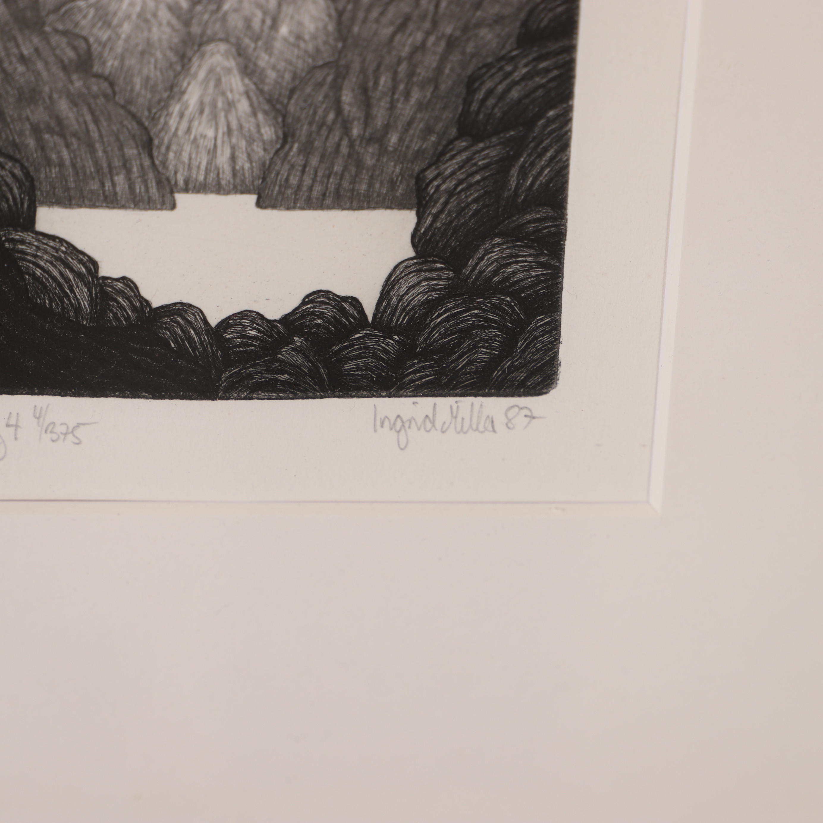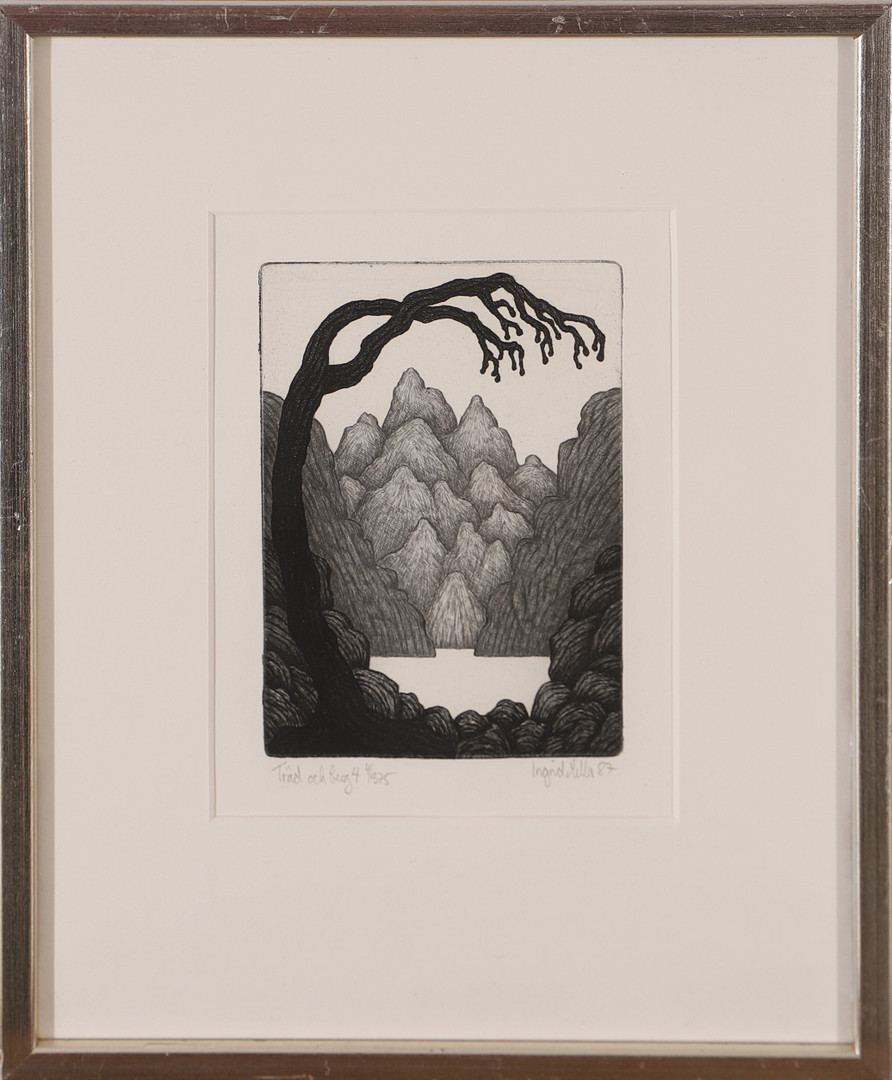 3135686. INGRID MILLER. "Träd & berg 4", etsning, signerad -87.
