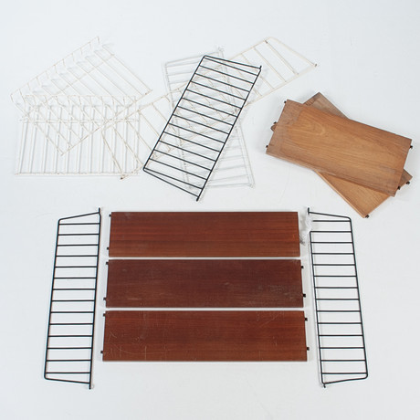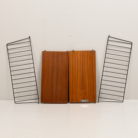 3137042. NILS & KAJSA STRINNING. Vägghyllor, 13 dlr, "String Plex", för String, gavlar i transparant plexiglas, svartlackerade hyllplan, samtida.