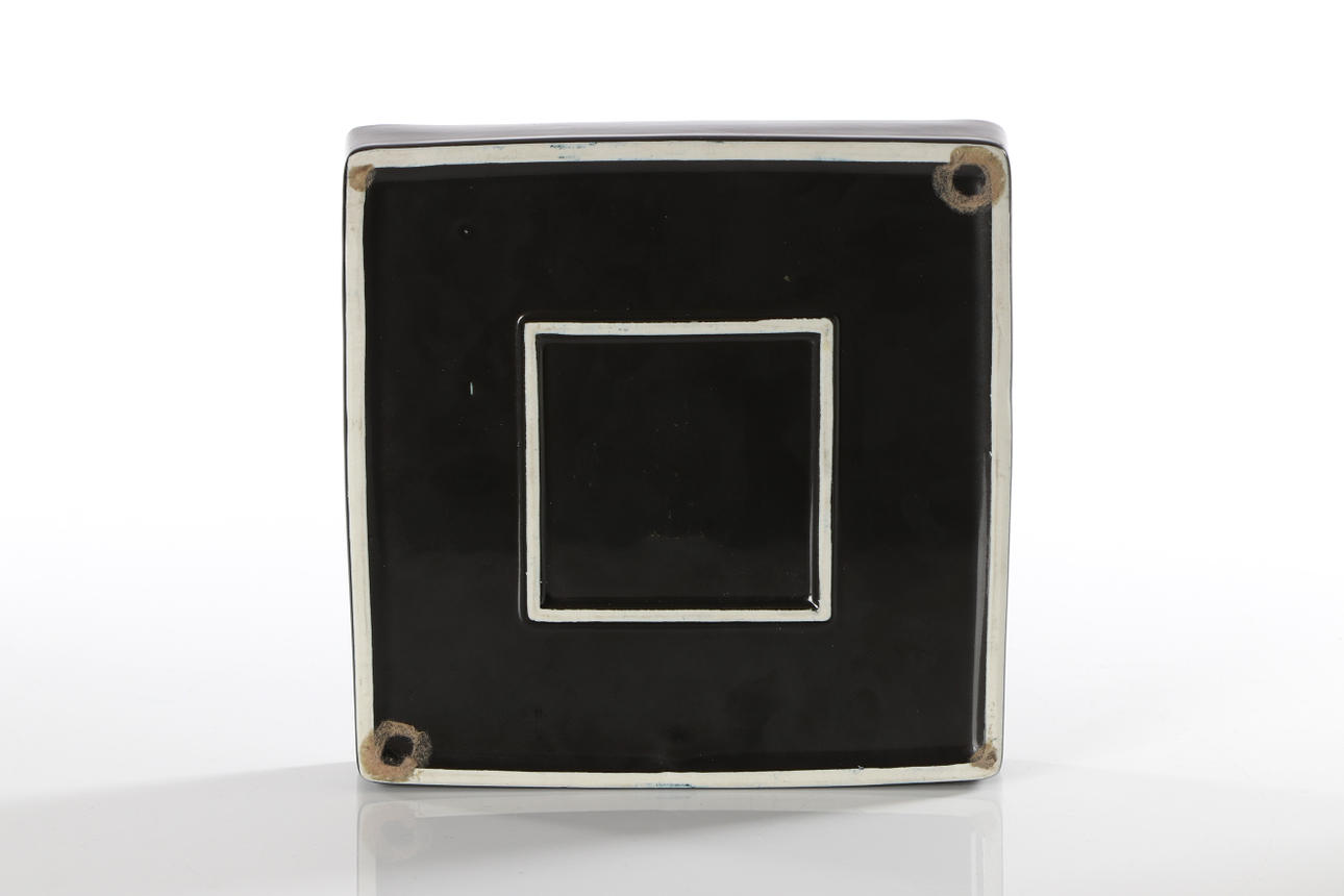 "Domino", stengods, Gustavsberg. Geometrisk dekor med svart glasyr. 20x20 cm.