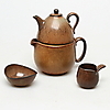 Bestående av dubbelkanna, skål och gräddkanna. Högsta höjd 21,5 cm.