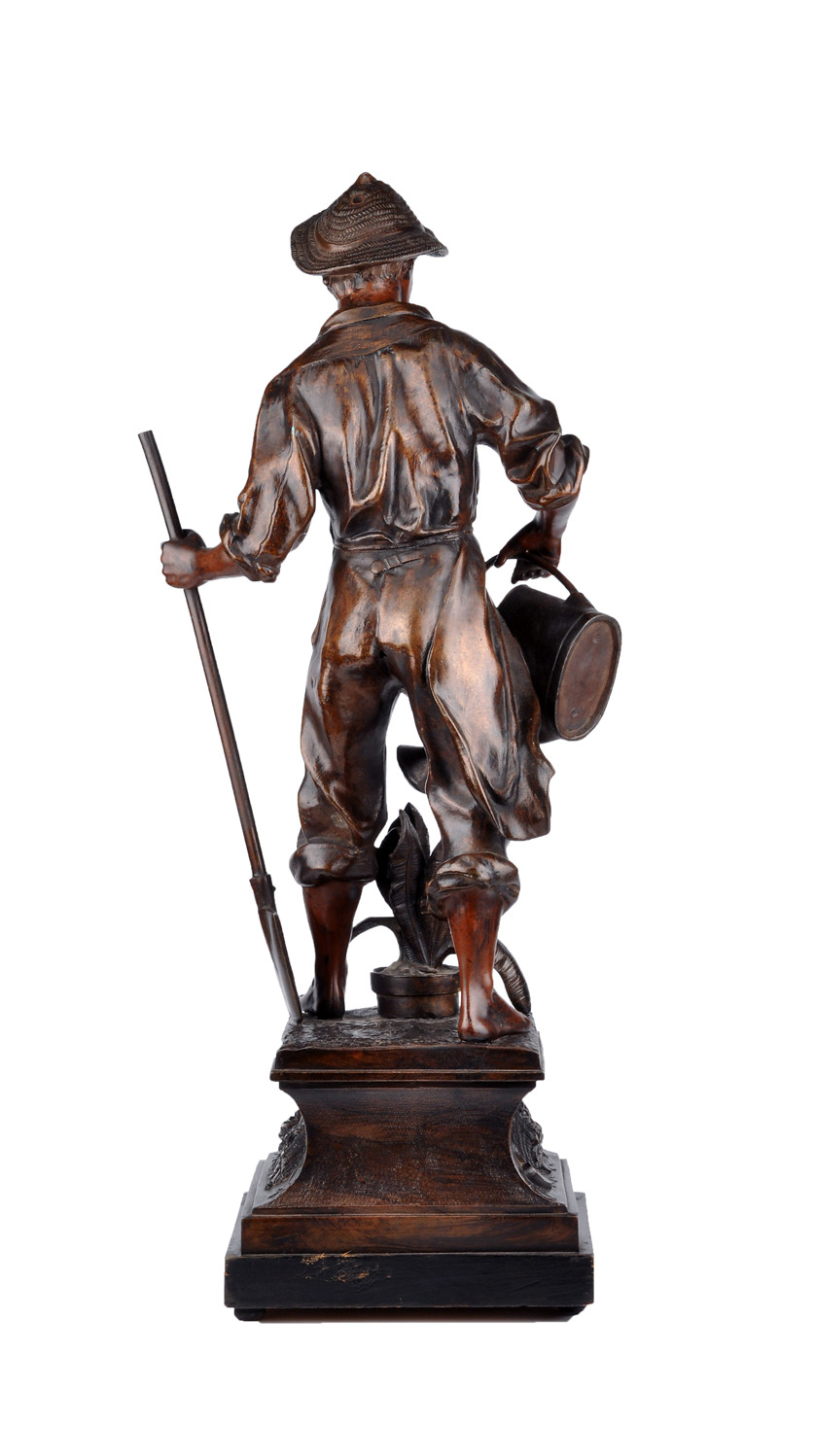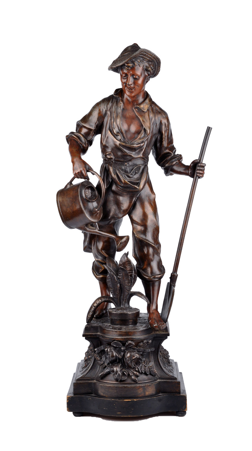 313905. FRANCOIS EUGENE ROUSSEAU. TILLSKRIVEN. Ung trädgårdsmästare med spade vatten blomman calla.