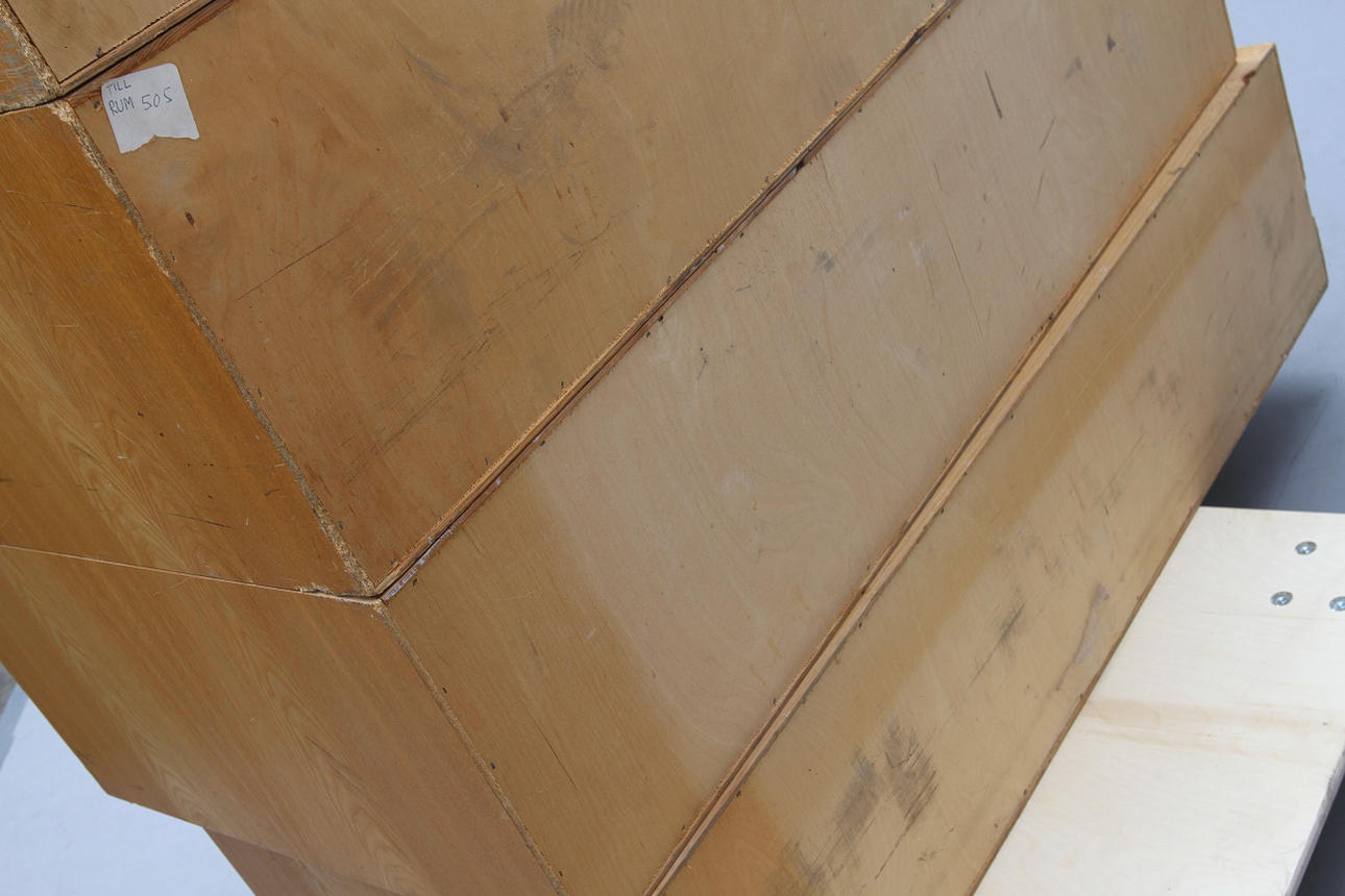 Ek. Längd 135, bredd 69, höjd 140 cm. Skiva i plywood.