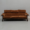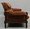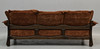 Antikbonad ask. Vändbara dacronplymåer, klädda med dralon "Nalle". Rygghöjd ca 83 cm. Sitthöjd ca 40 cm. Bredd ca 213 cm.