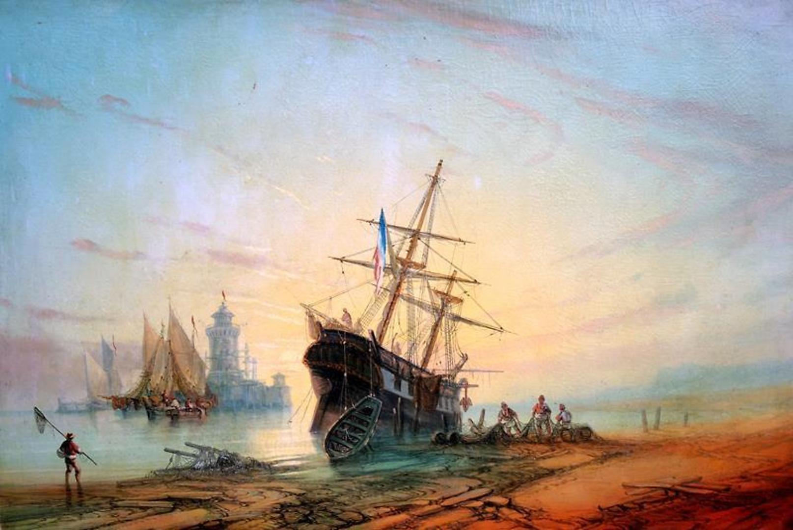 314302. UNBEKANNTER KÜNSTLER. segelfartyg i hamnen.