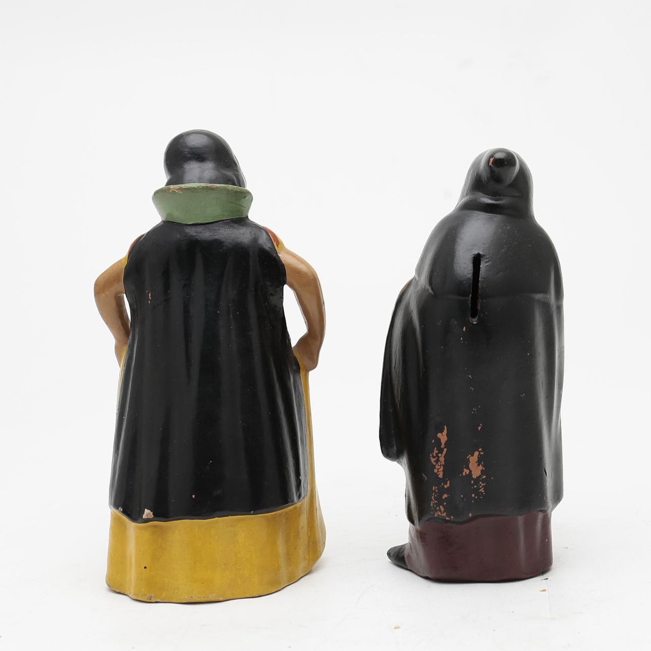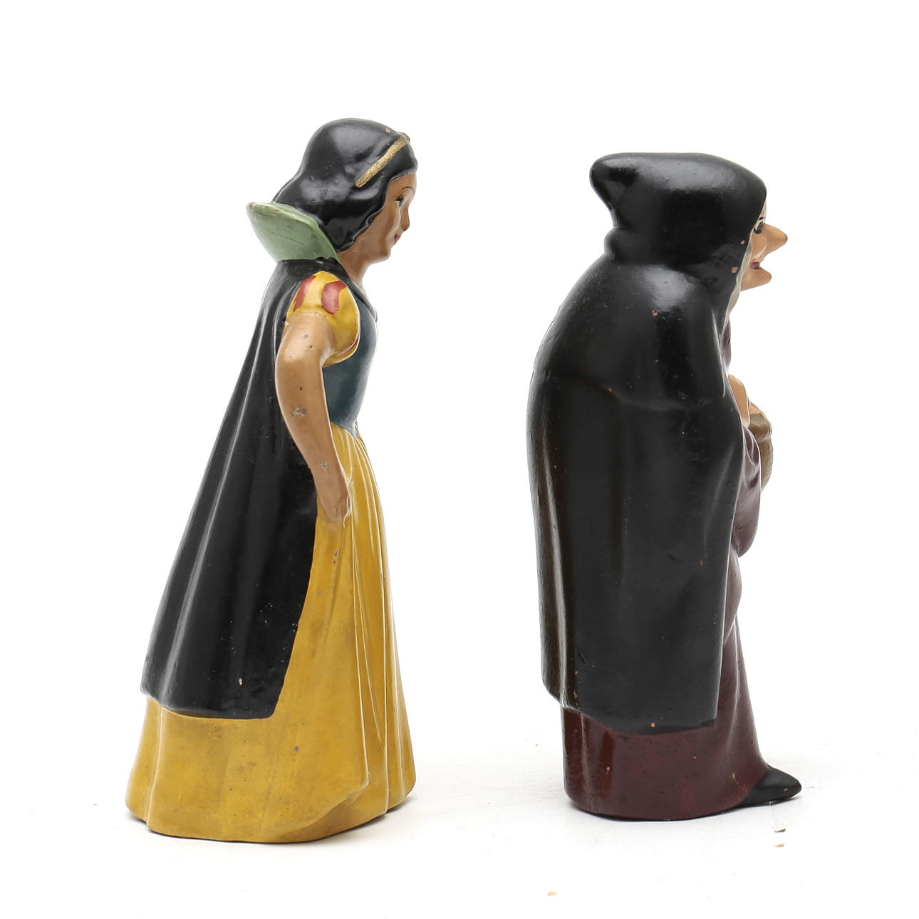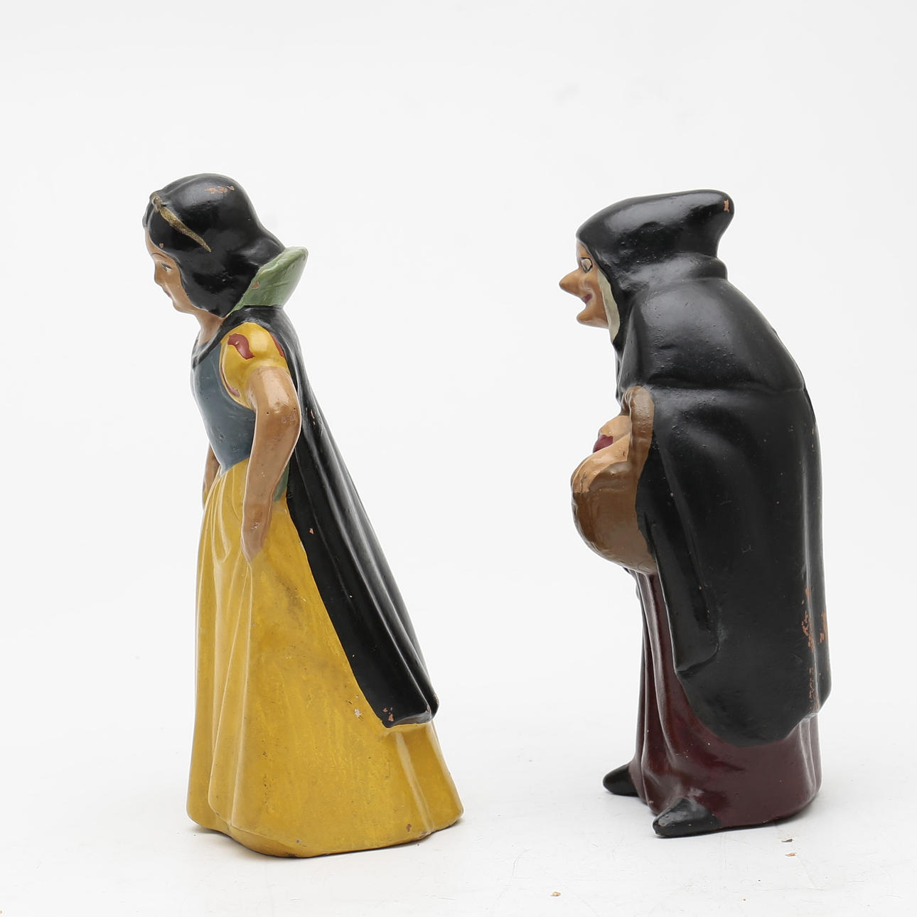 Snövit och ”Häxan”, två målade terrakottafigurer.