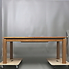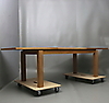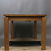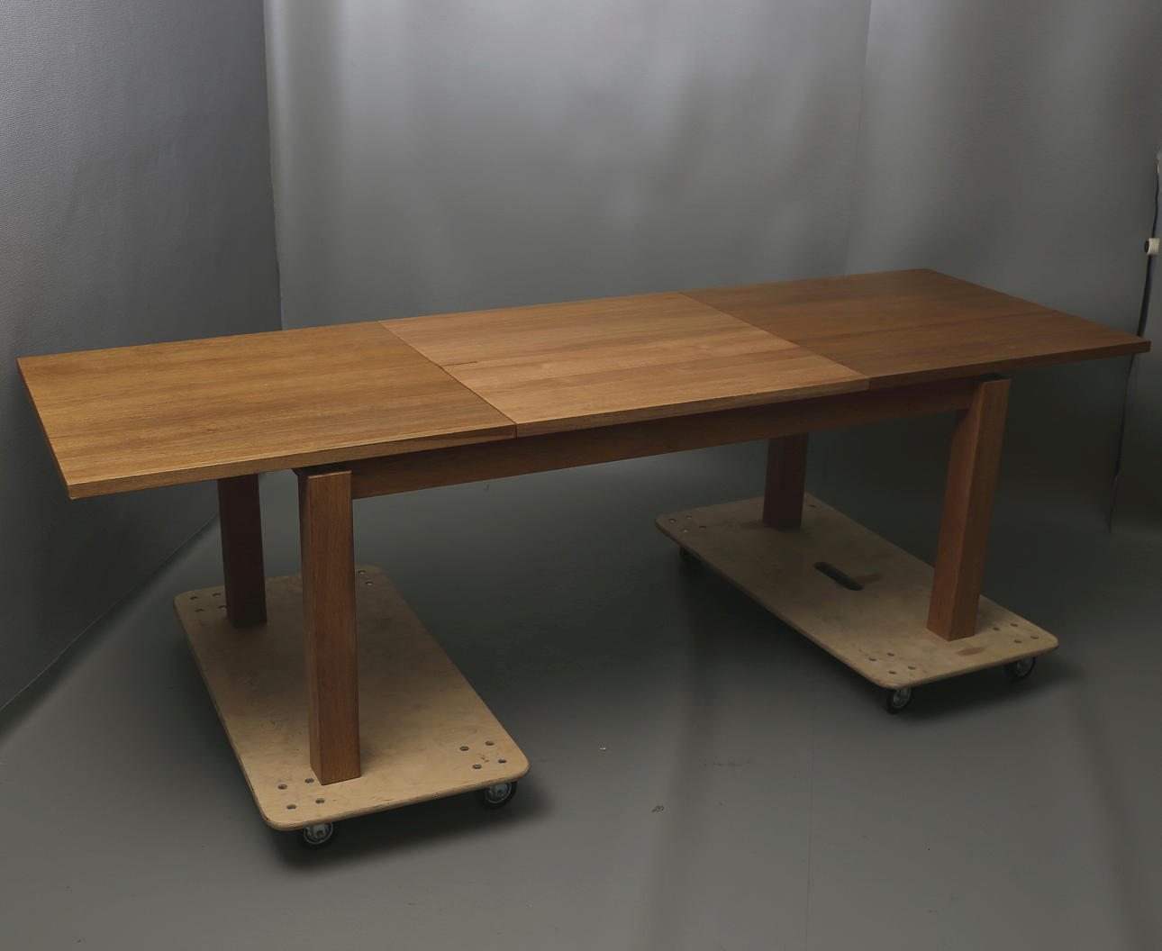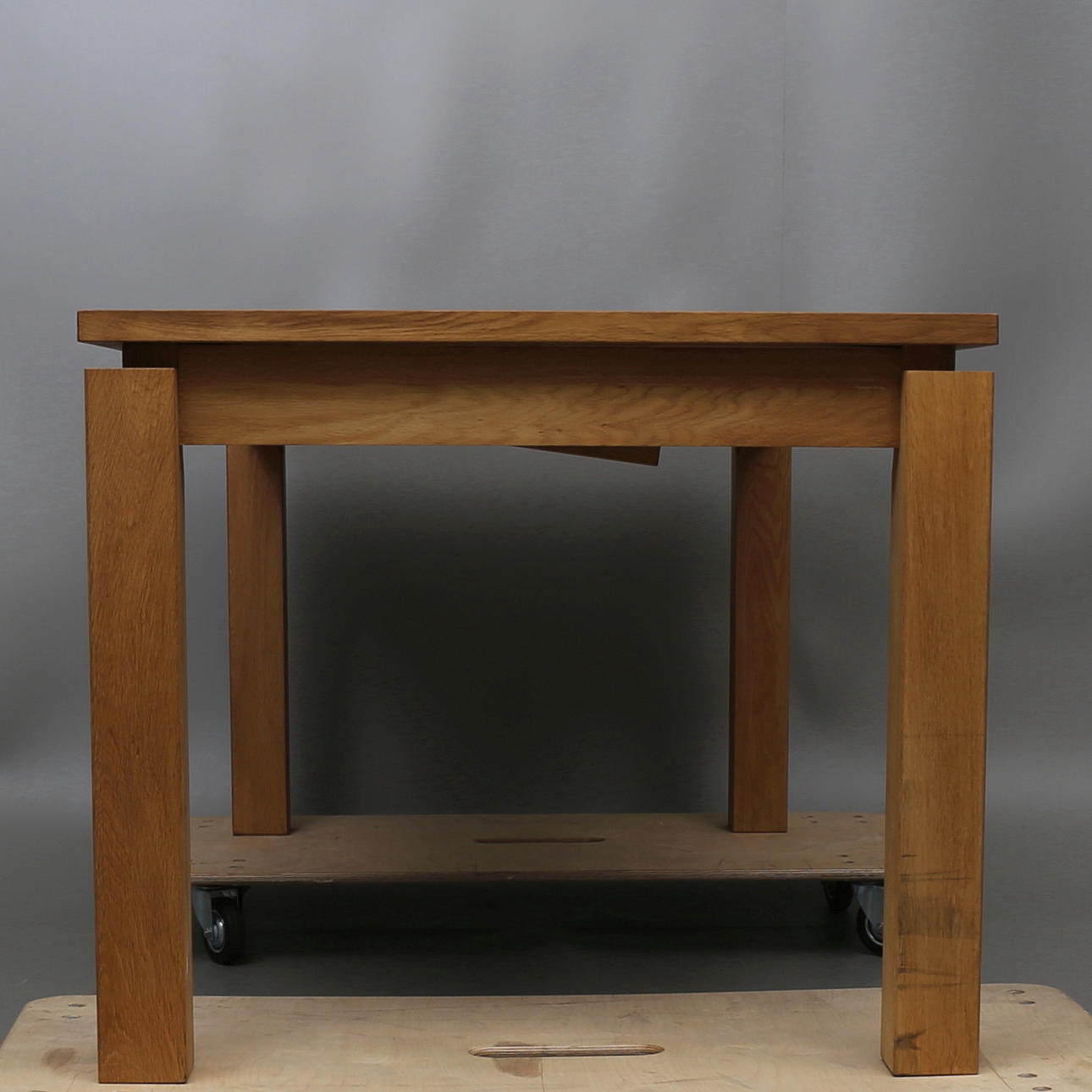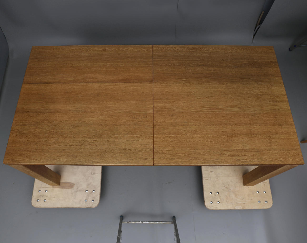 Matbord utfört i massiv ek med två iläggsskivor, bredd 180/270 cm, djup 90 cm, höjd 77 cm.