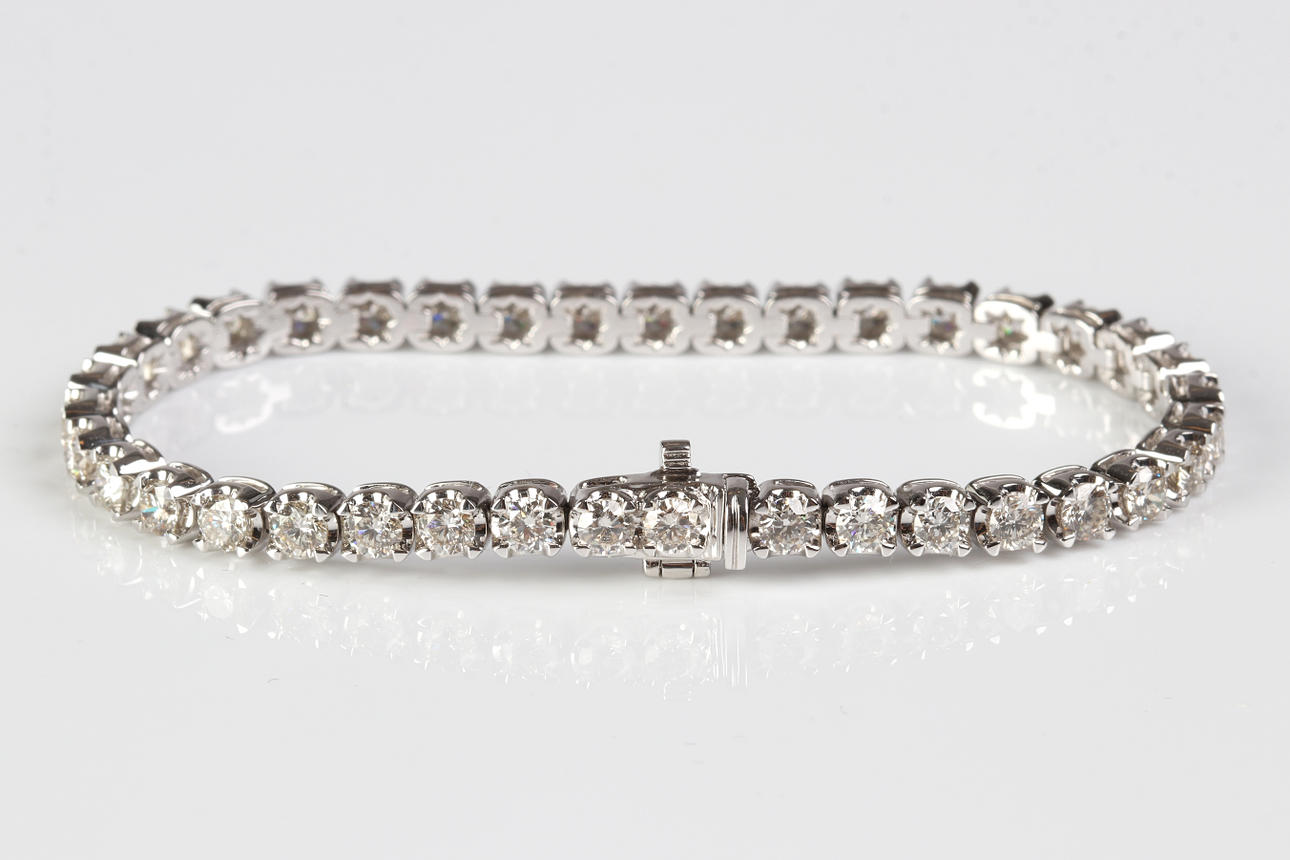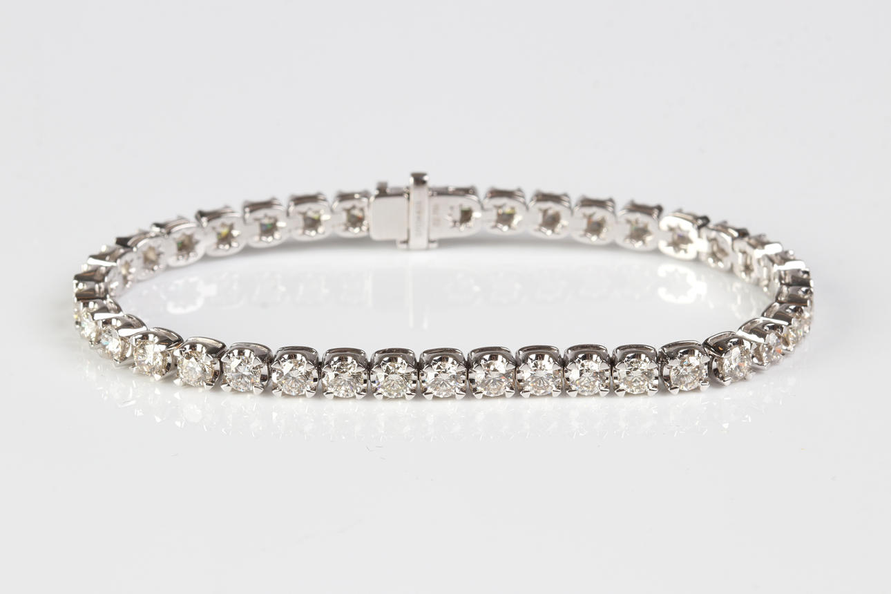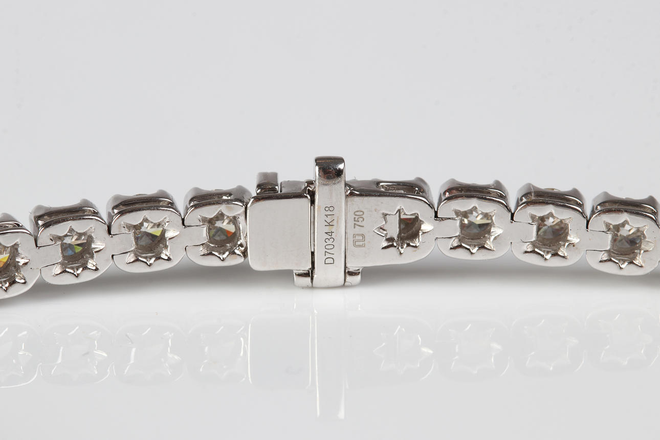 Armband av vitguld 18k med briljantslipade diamanter ca 7,03 ct, färg I-J, klarhet VS-P1, längd ca 18 cm, totalvikt 20,0 g.