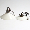 Skärmar av opalinglas, fäste av mässing. Diameter 21 - 26 cm.