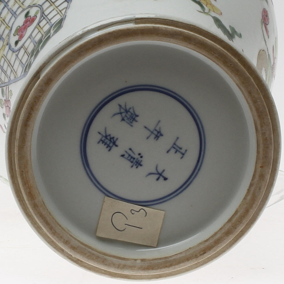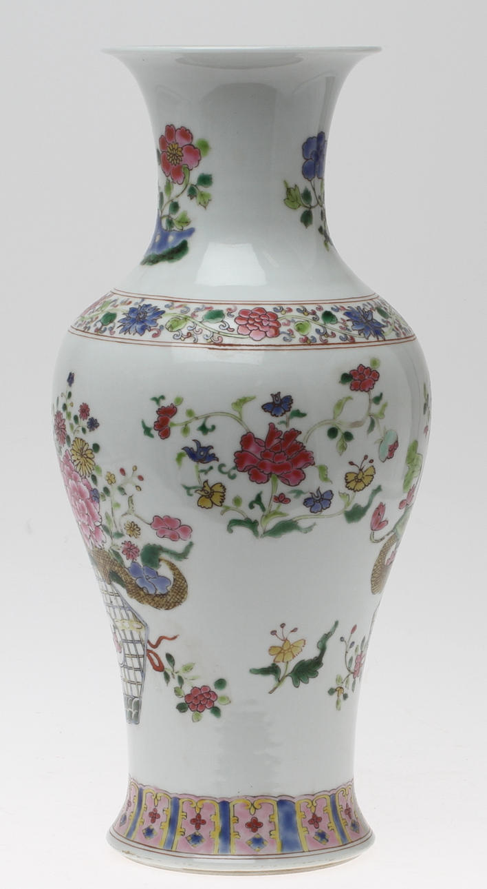 Dekor i famile rose-fäger, höjd 41,5 cm.