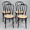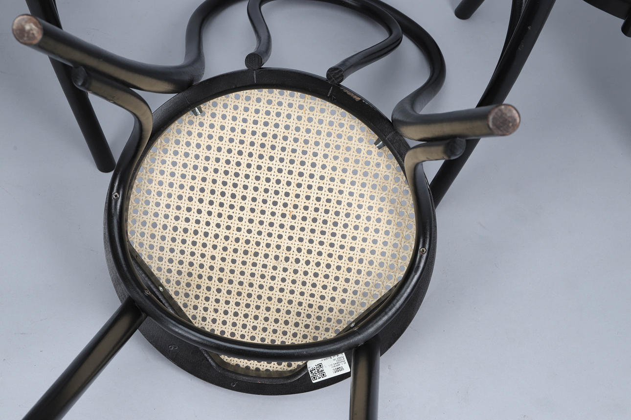 Svartlackerad böjträ, sits i rotting. Sitthöjd 47 cm. Etikettmärkning.