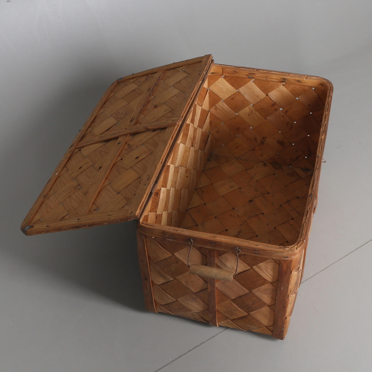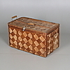 Med uppfällbart lock och tre handtag. Metallbeslag.