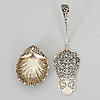 2 SUPKOPPAR, SALTKAR SAMT KAKSPADE, silver.
