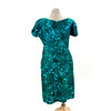 Vintage grön blommönster sidenklänning. Axel-axel ca.. 46cm., Pit-Pit ca. 47cm. Midja ca. 80cm., Höfter ca. 108cm., längd ca. 96 cm.