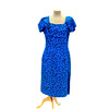 Vintage prickig blå klänning. Axel-axel ca.. 60cm., Pit-Pit 50cm., Midja ca. 86cm., Midja ca. 116cm., Längd ca. 107 cm.