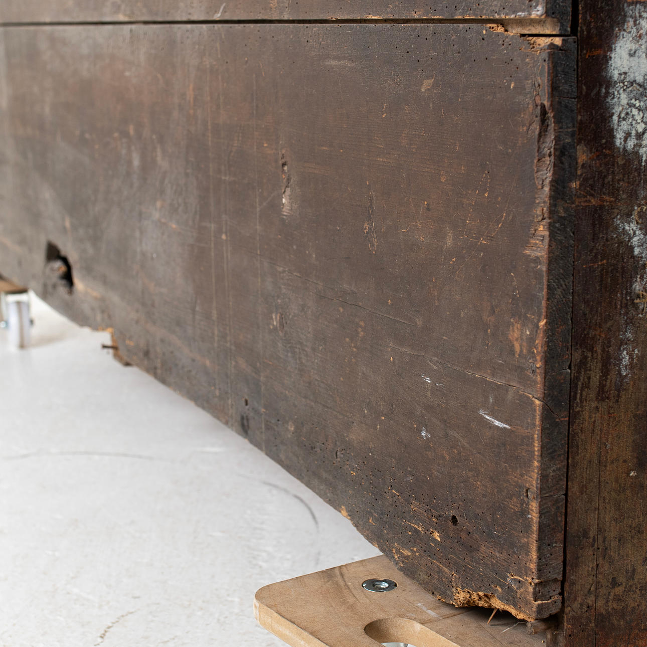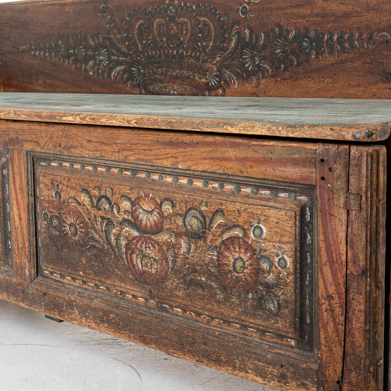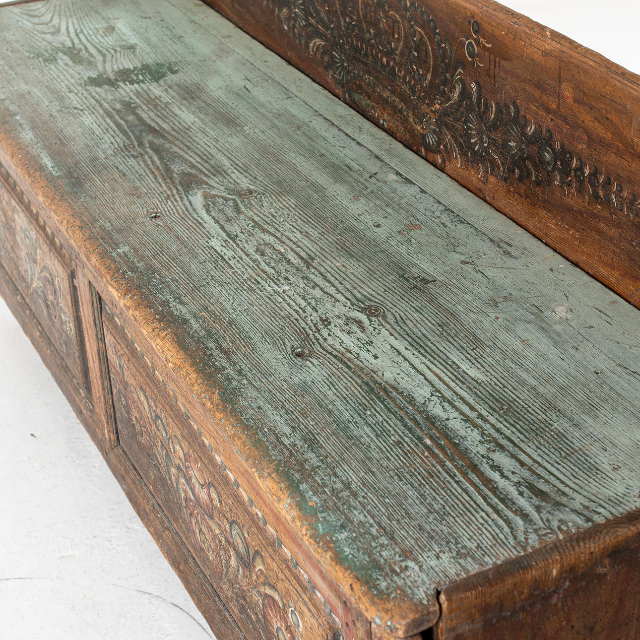 Ådringsmålad furu. Dekormåleri i form av blad och blomster.