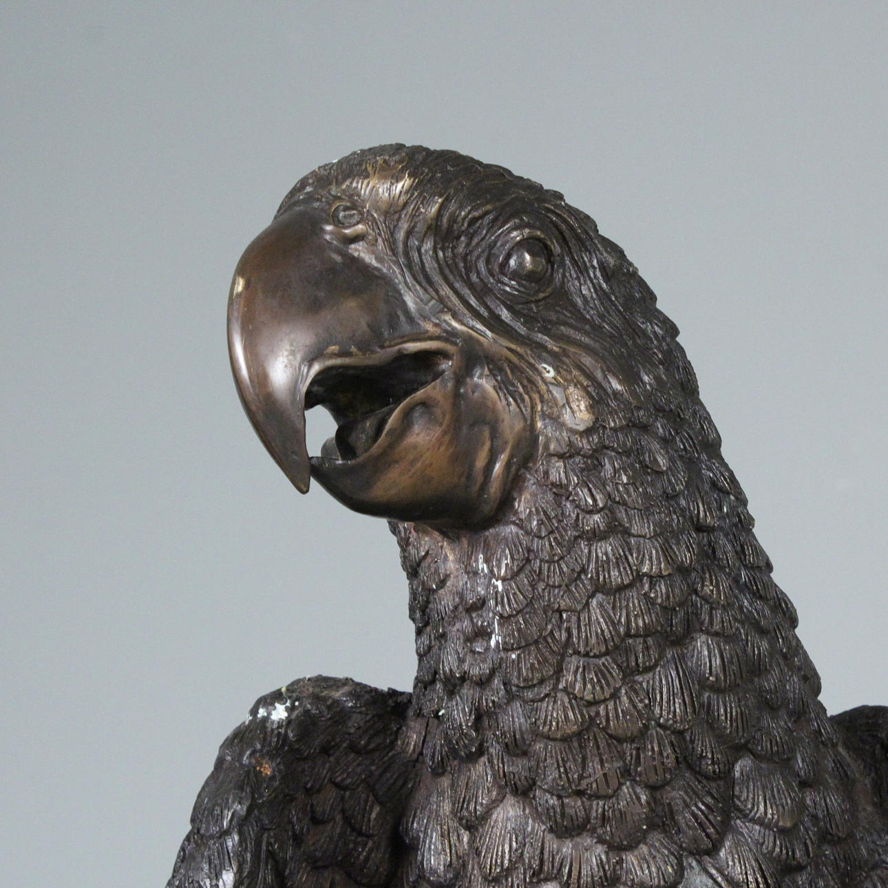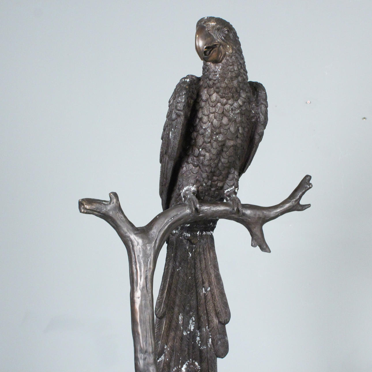 Stor skulptur 'Papegoja', mässing, syntetiskt harts/massa, Mått ca.: Höjd 172 cm.