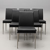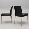 Klädd i svart skinn. Sitthöjd 49 cm. Sittdjup 44 cm. Rygghöjd 87 cm.