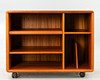 Teakträ, infällbar innerhylla, höjdjusterbara innerhyllor, förvaringsutrymme för vinylskivor, på 4 hjul.
