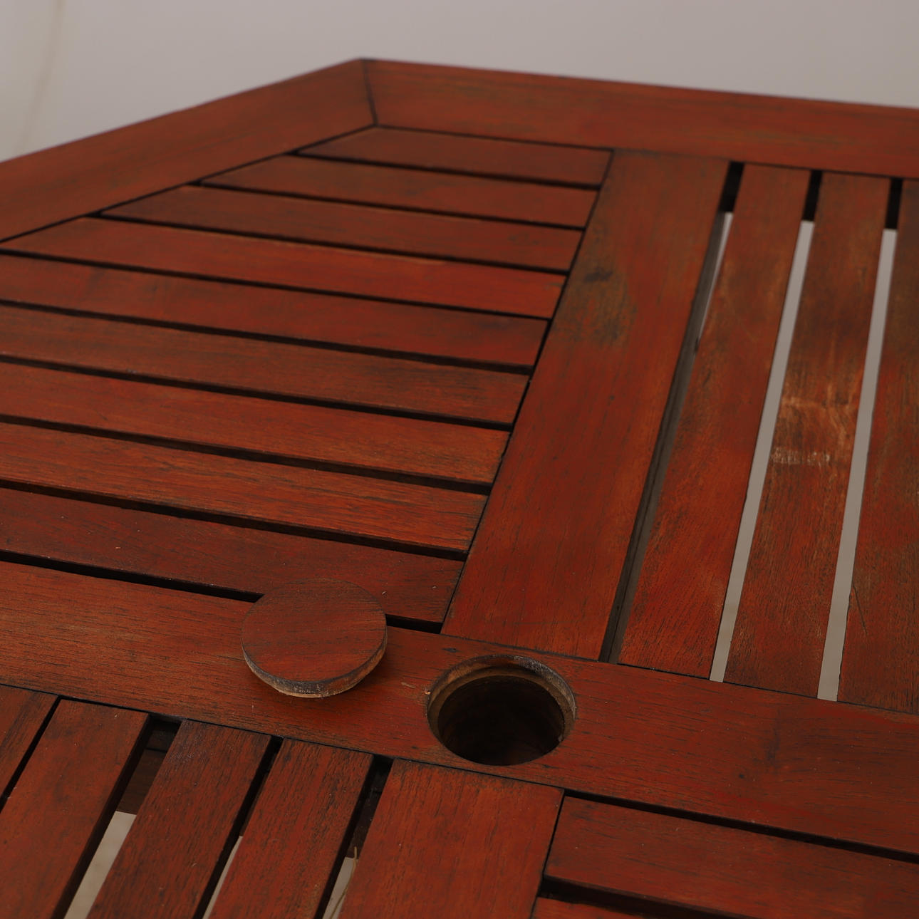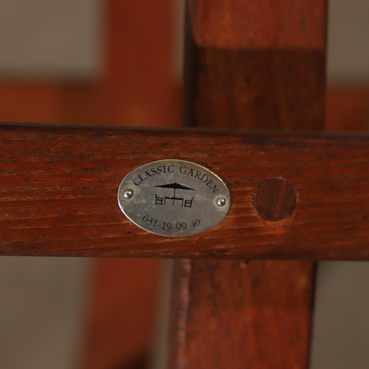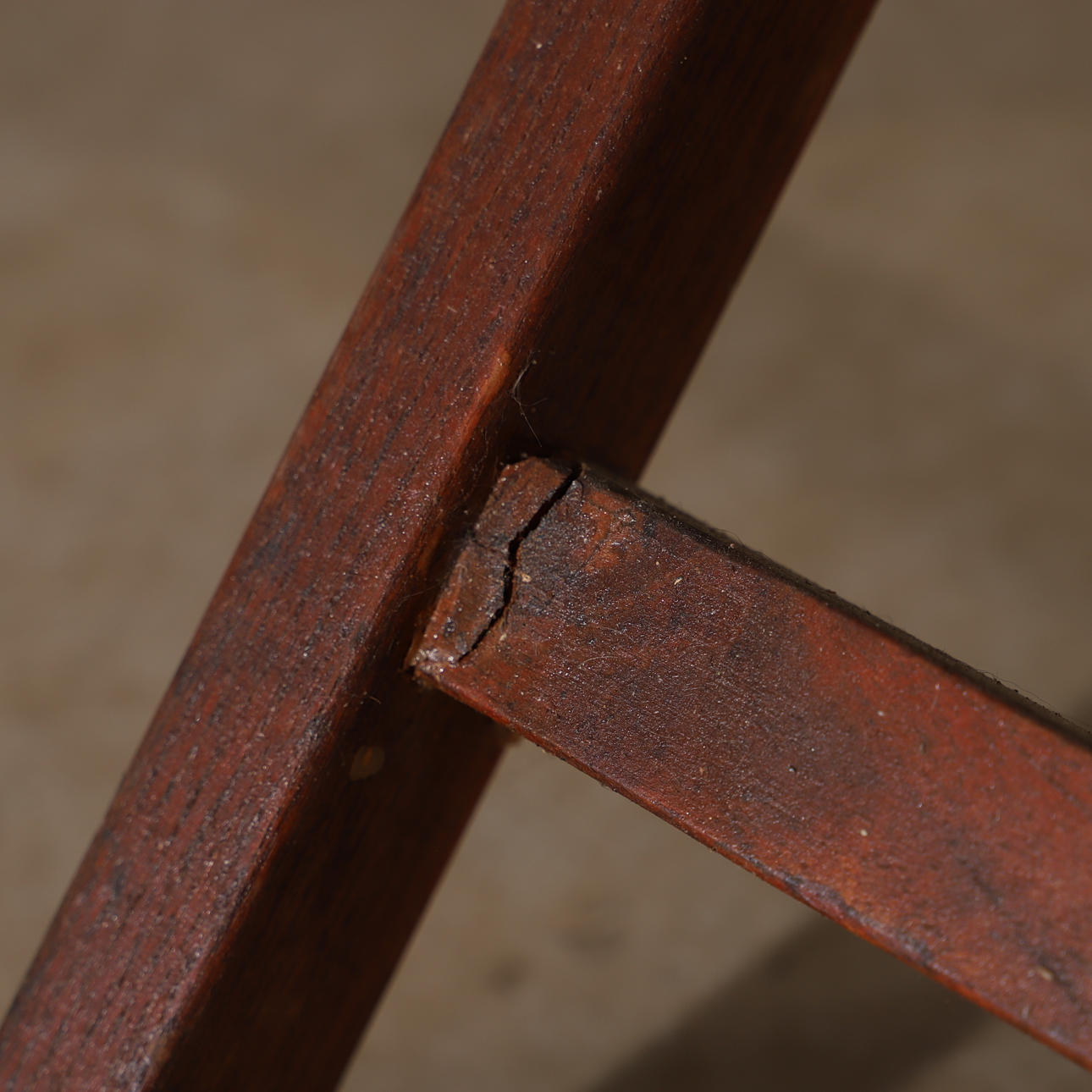 Märken, bruksslitage. En stol med spricka vid ena tvärstaget undertill.