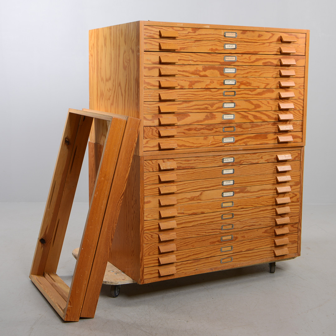 3157288. ARKIVSKÅP/ARKITEKTSKÅP, 2 st, 1900-talets andra hälft.