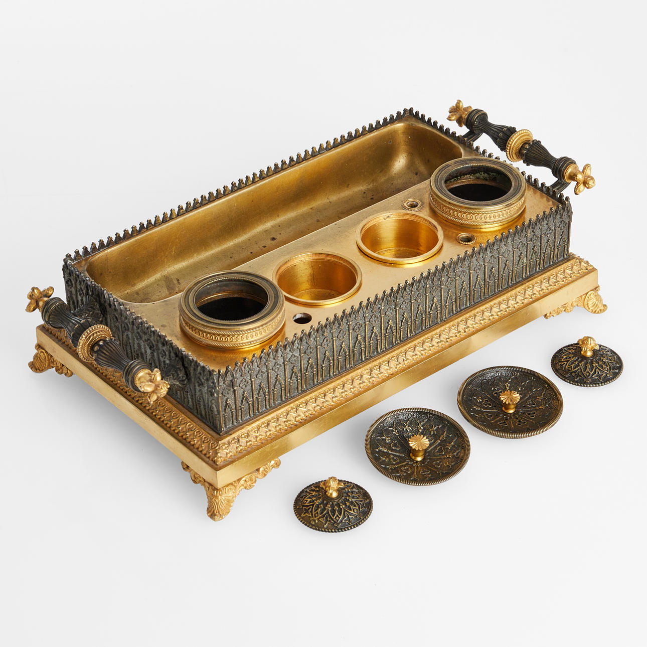 3157320. SKRIVBORDSSTÄLL, empirestil, omkring 1900.