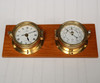 3158215. BAROMETER OCH CHRONOMETER, Pilot, Navigator, Marine. mässing på träplatta.