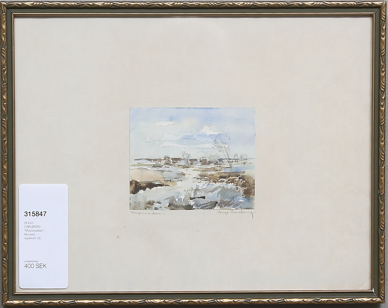 315847. HUGO CARLBERG. "Mossmarken". Akvarell, signerad.