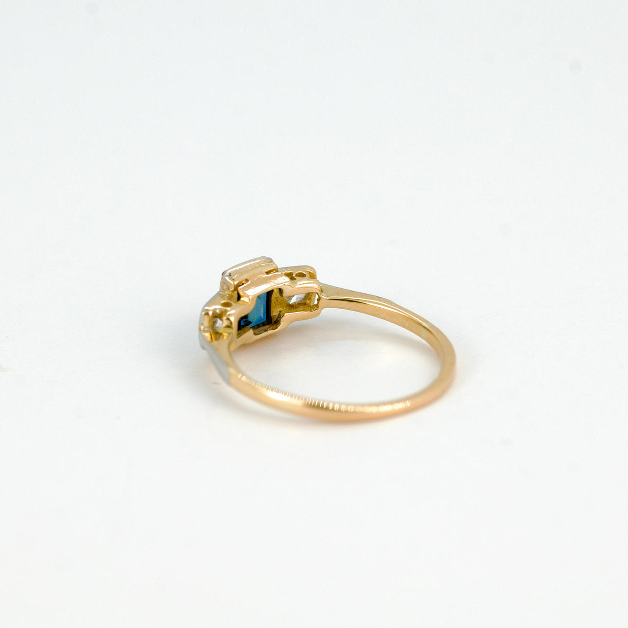 En ring i 18 karat gult guld och platina med en rektangelskuren safir med två briljantslipade diamanter, ringstorlek N.