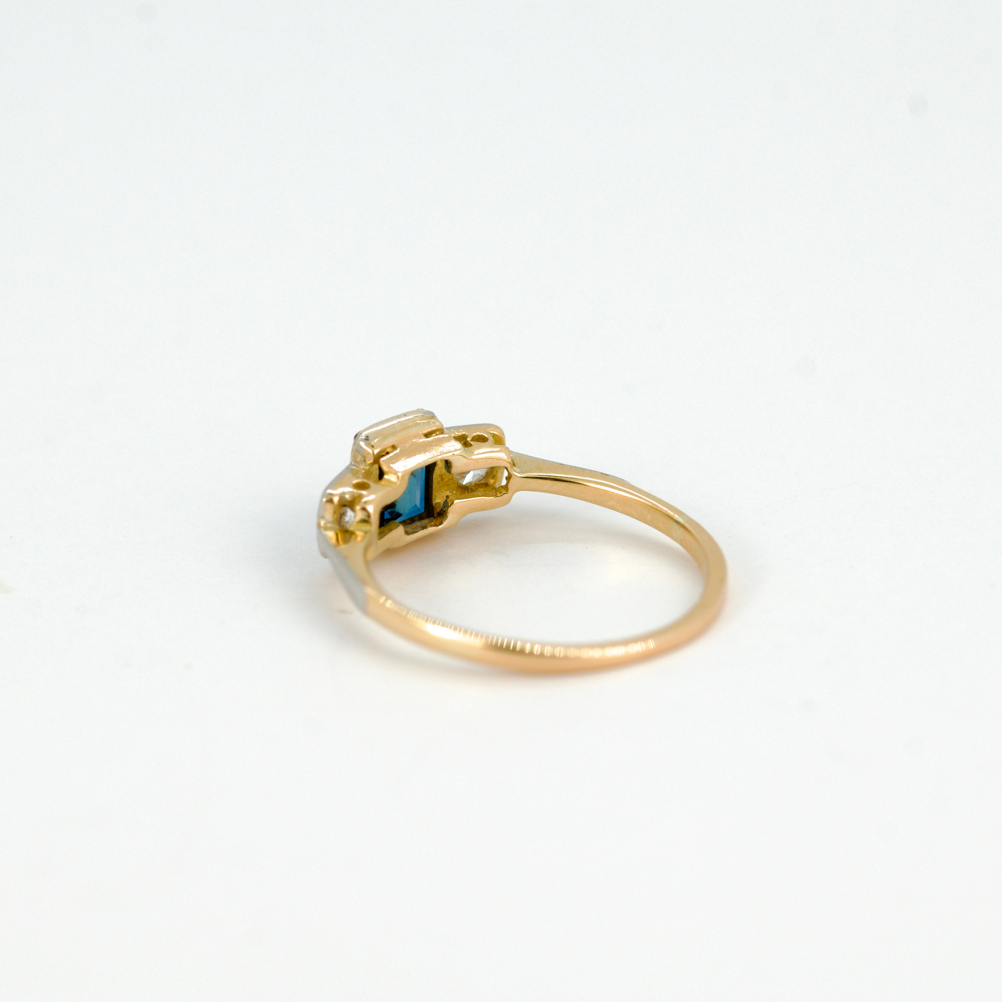 3159206. 18CT SAFIR OCH DIAMANT TRE STEN RING.