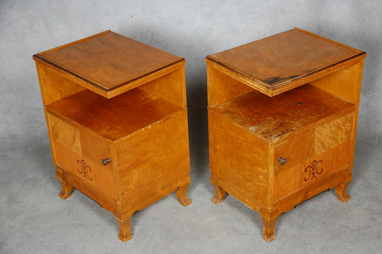 Nattduksbord 1 par 1930-tal, björk, björkfanér