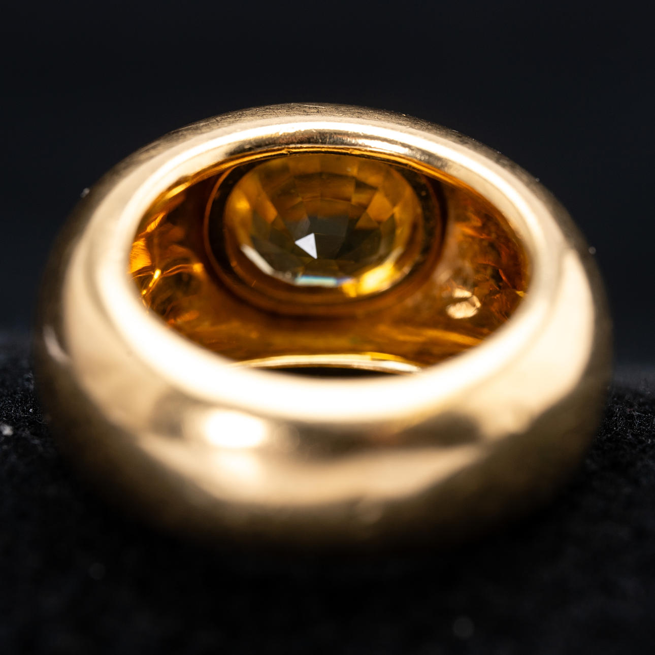 Ring av 750 guld, infattad med en gul safir på ca. 9,5 mm x 8,5 mm Ringstorlek ca. 55 Vikt ca. 22,6 gram.