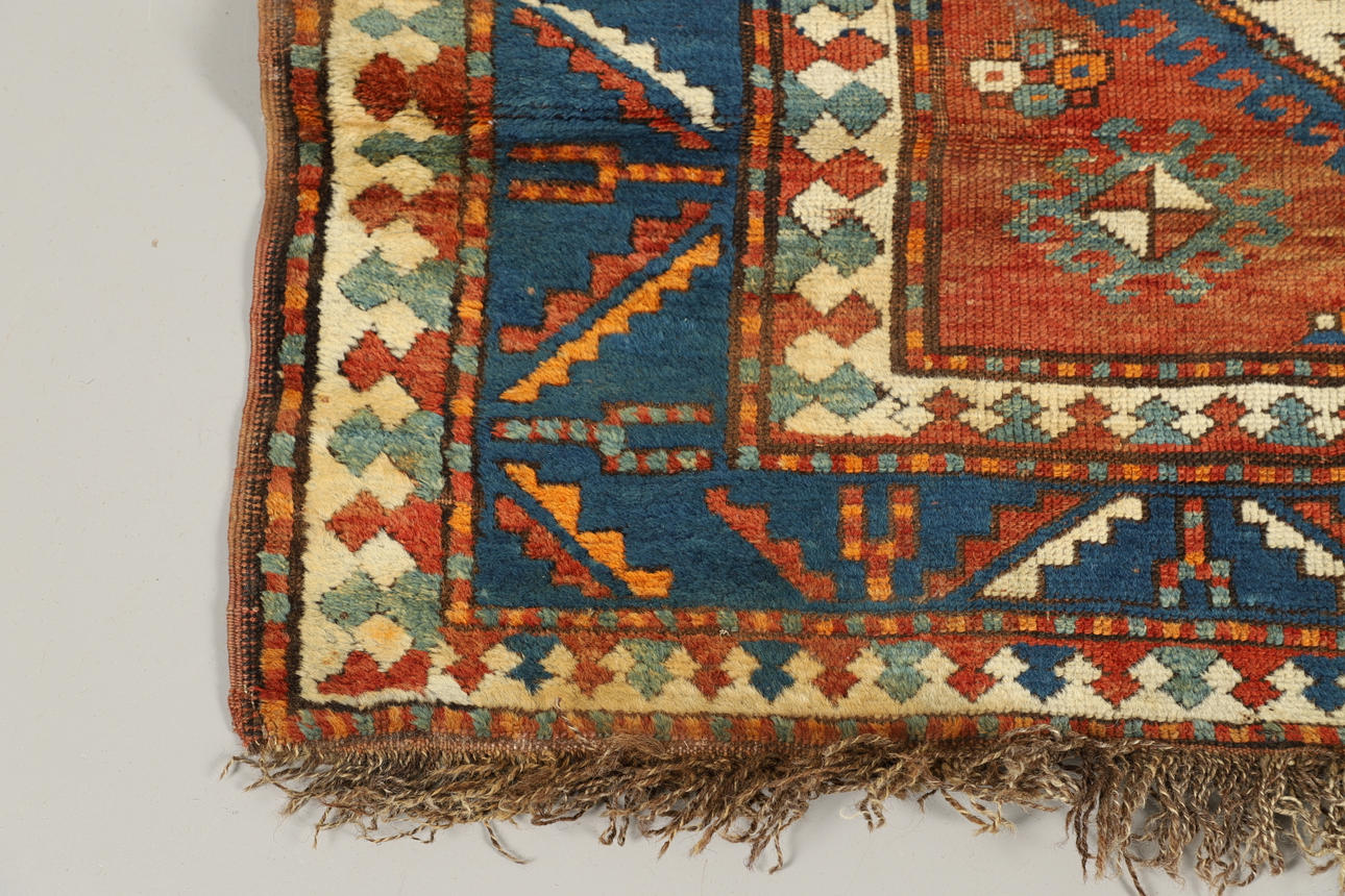 Fältet med tre medaljonger omslutna av blad- och kalyxkanter, 240cm x 163cm.