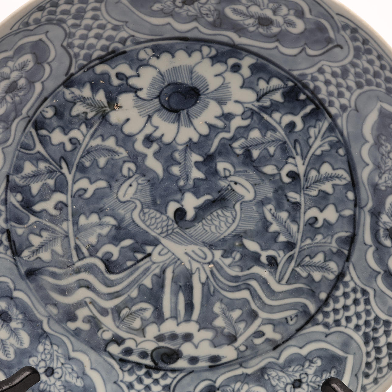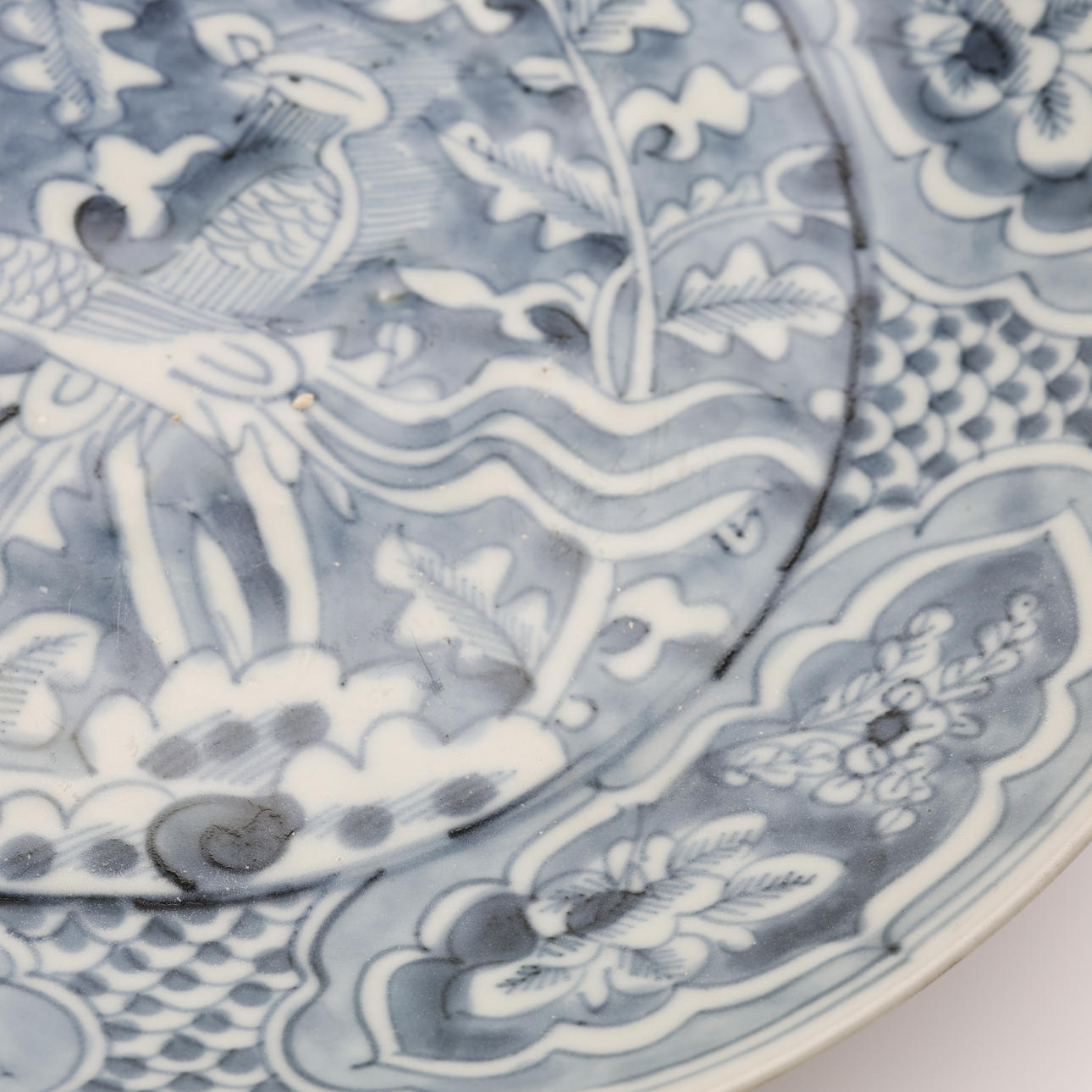 dekor i underglasyrblått av fåglar