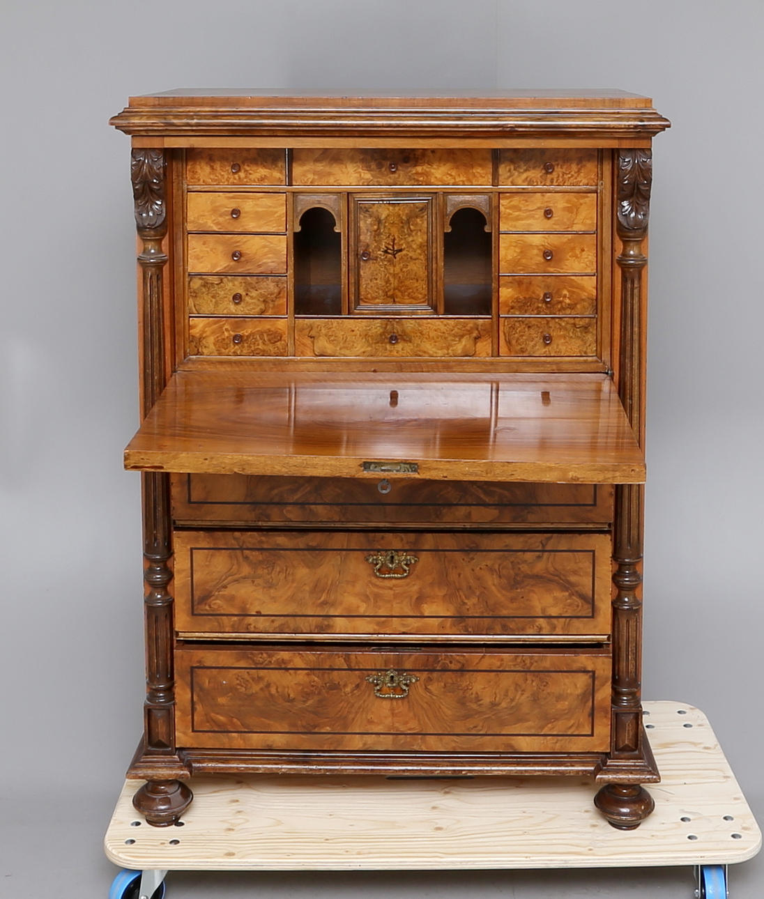 Med rotfaner samt mässingsbeslag.