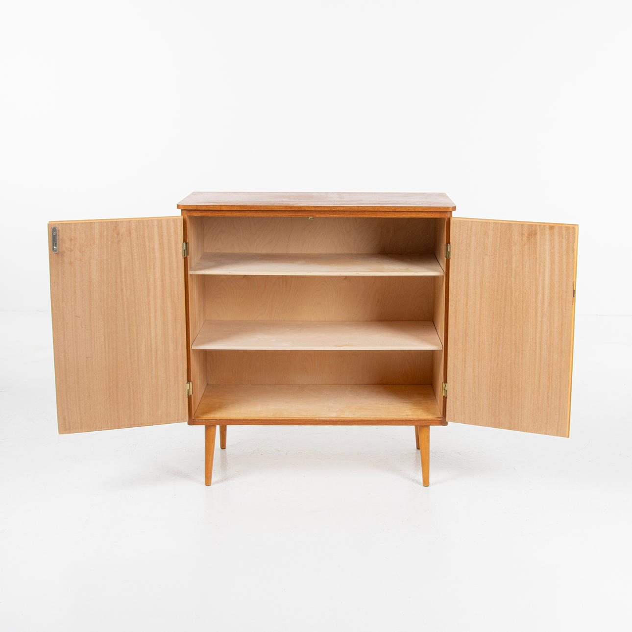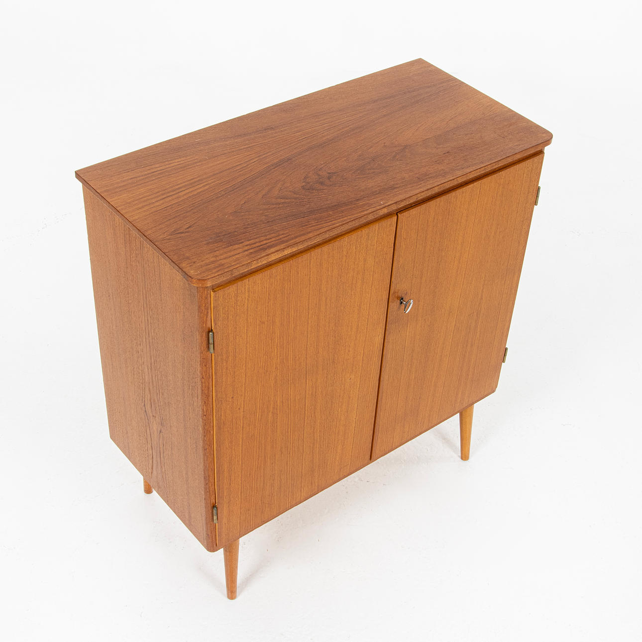 Skåp, teak, bakomliggande hyllplan, Sverige 1940/50-tal Höjd 87,5 cm Längd 83 cm Bredd 40,5 cm.