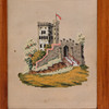 NYCKELSKÅP, trä, textil, glas, 1900-tal.