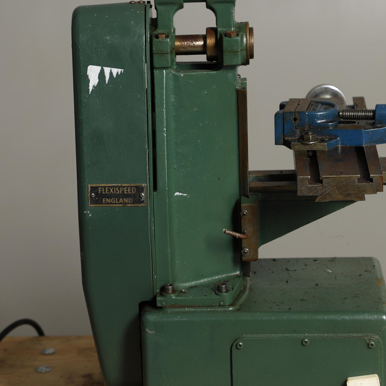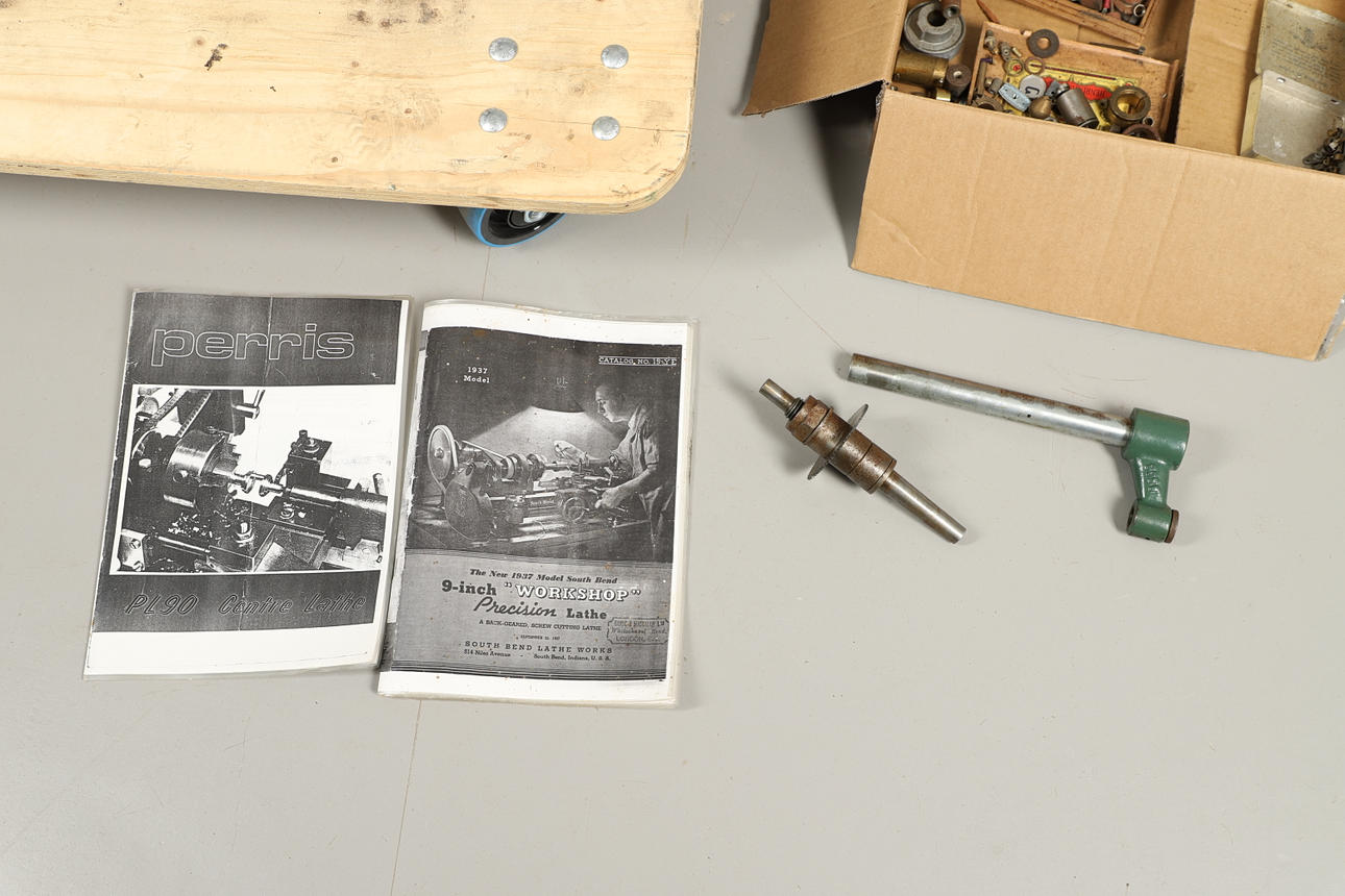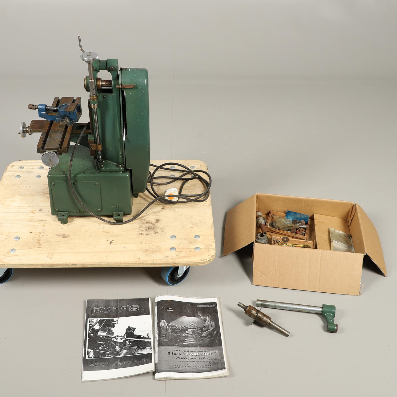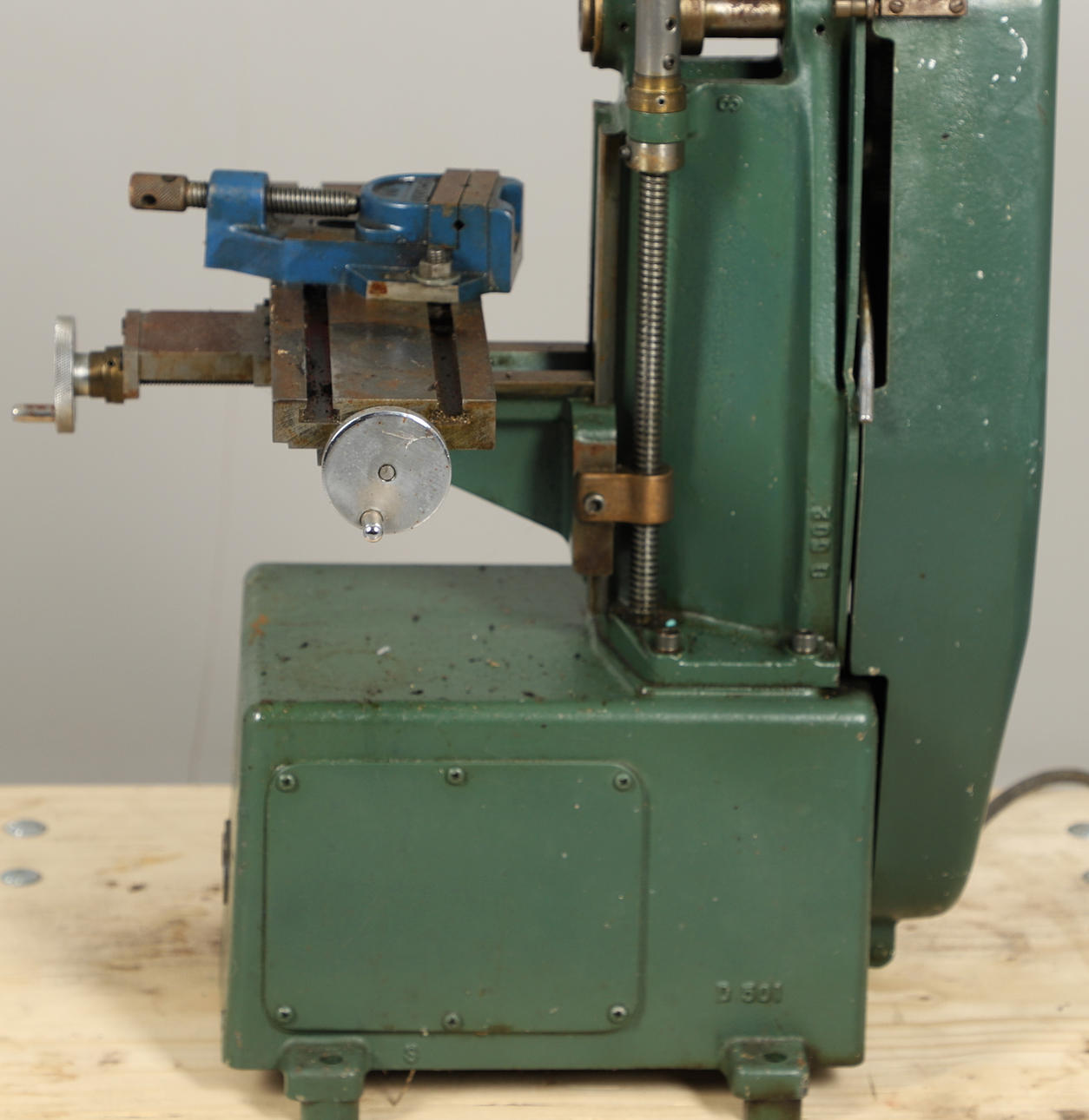 med fräsbord, elmotor och skivskruv, 61cm hög, tillsammans med några skivor och tillbehör (antal).