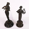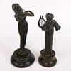 Små figurer, två stycken, brons av flickor som spelar instrument, högsta H. 19cm.