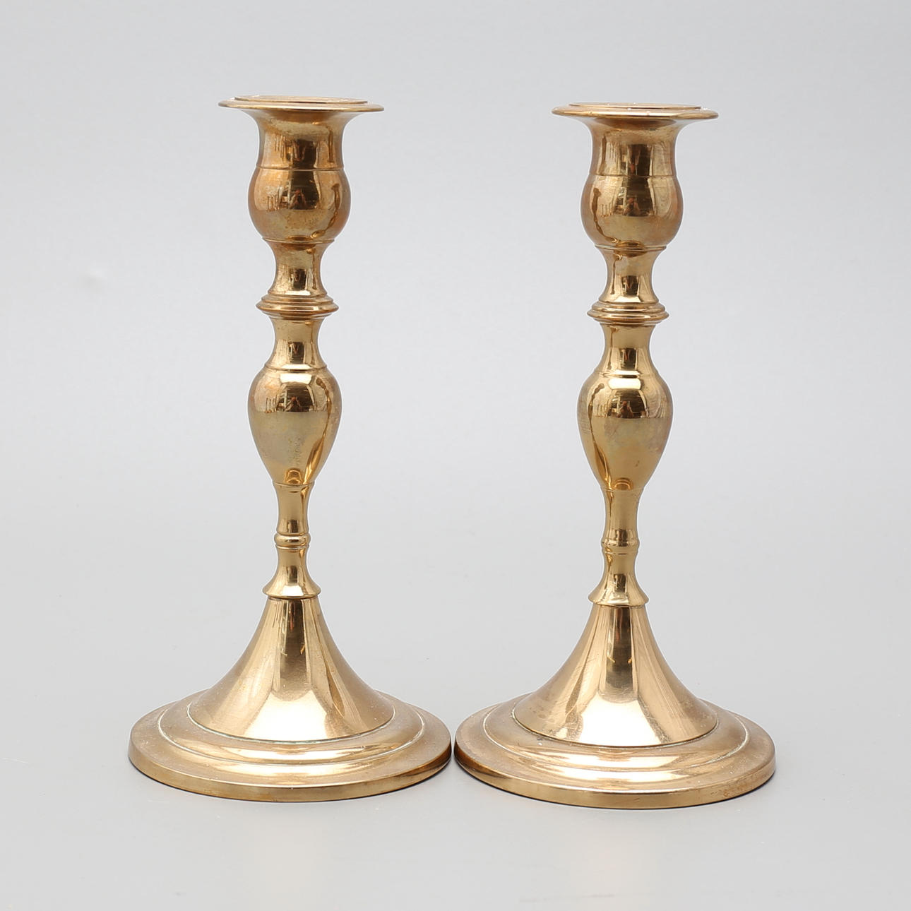 LJUSSTAKAR, 5 par, mässing, malm, 1900-tal.