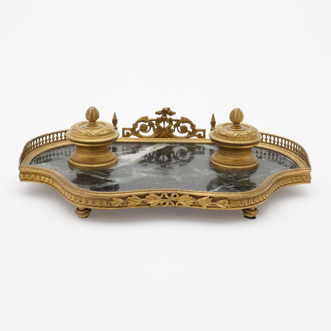 3172335. SKRIVSTÄLL, MARMOR OCH FÖRGYLLD BRONS.