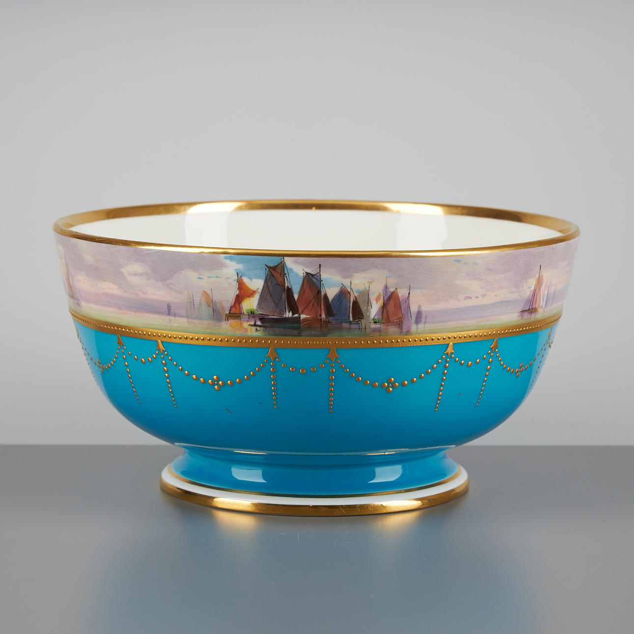Handmålad dekor och förgyllda detaljer. Diameter 25 cm, höjd 12 cm.