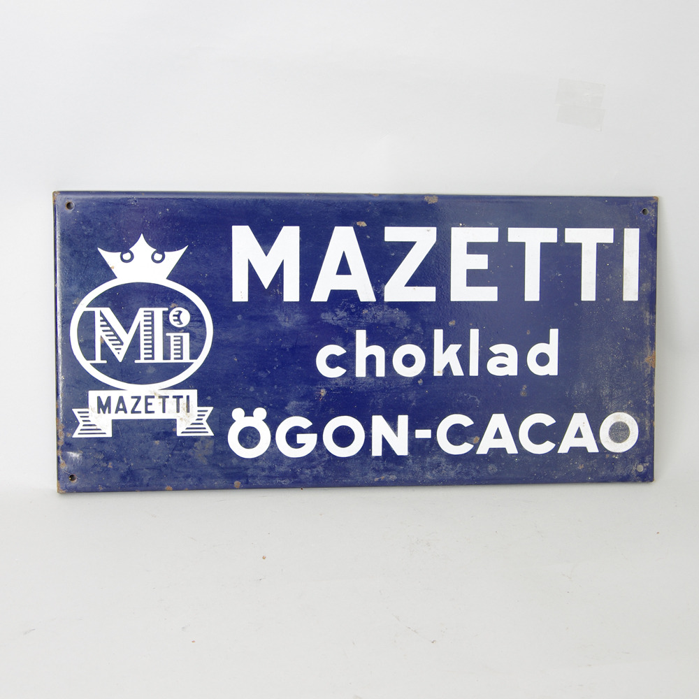 317440. REKLAMSKYLT, "Mazetti", emaljerad plåt.