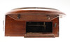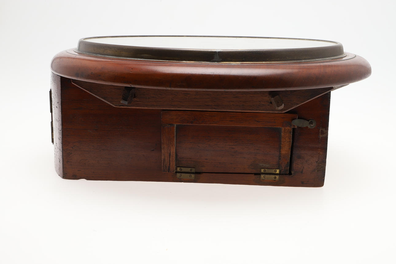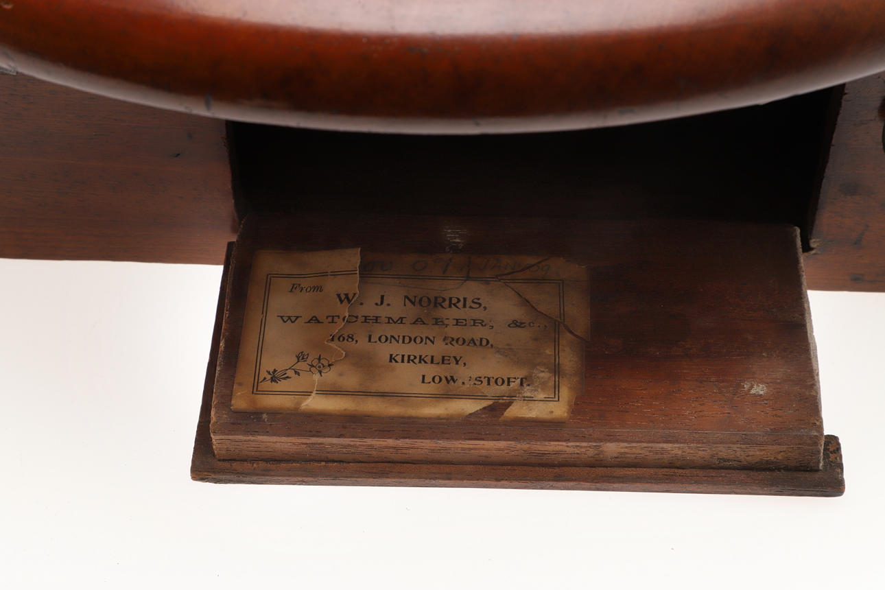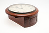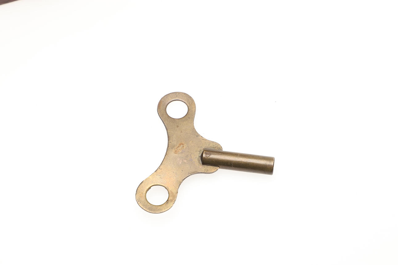 Ommålad urtavla, lätt slitage på fodralet, förlust av faner och skador nära bottenkåpan, ingen pendel.